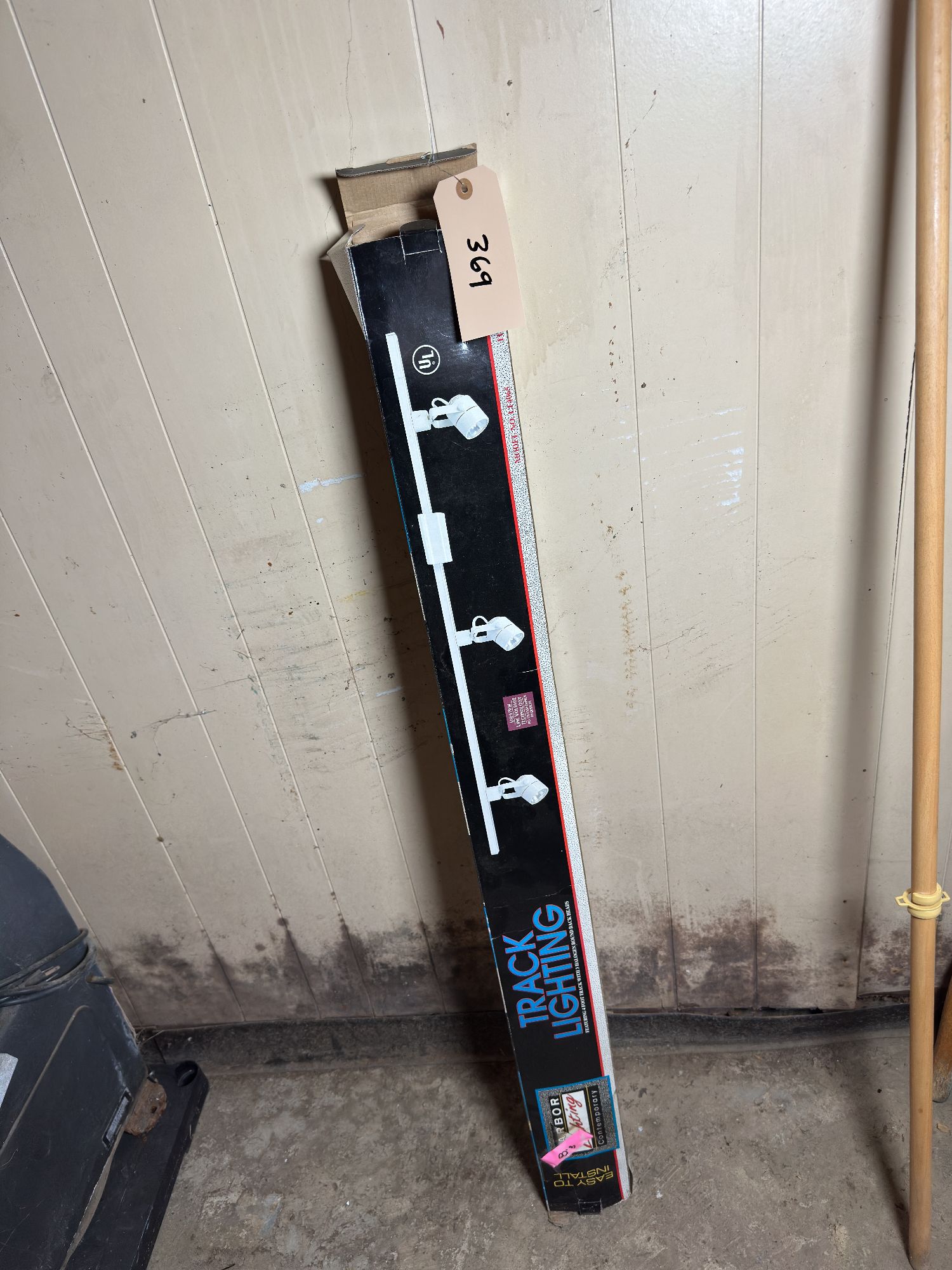 This listing features a 4-foot track lighting fixture. It has three round back heads and is still in its original packaging.
