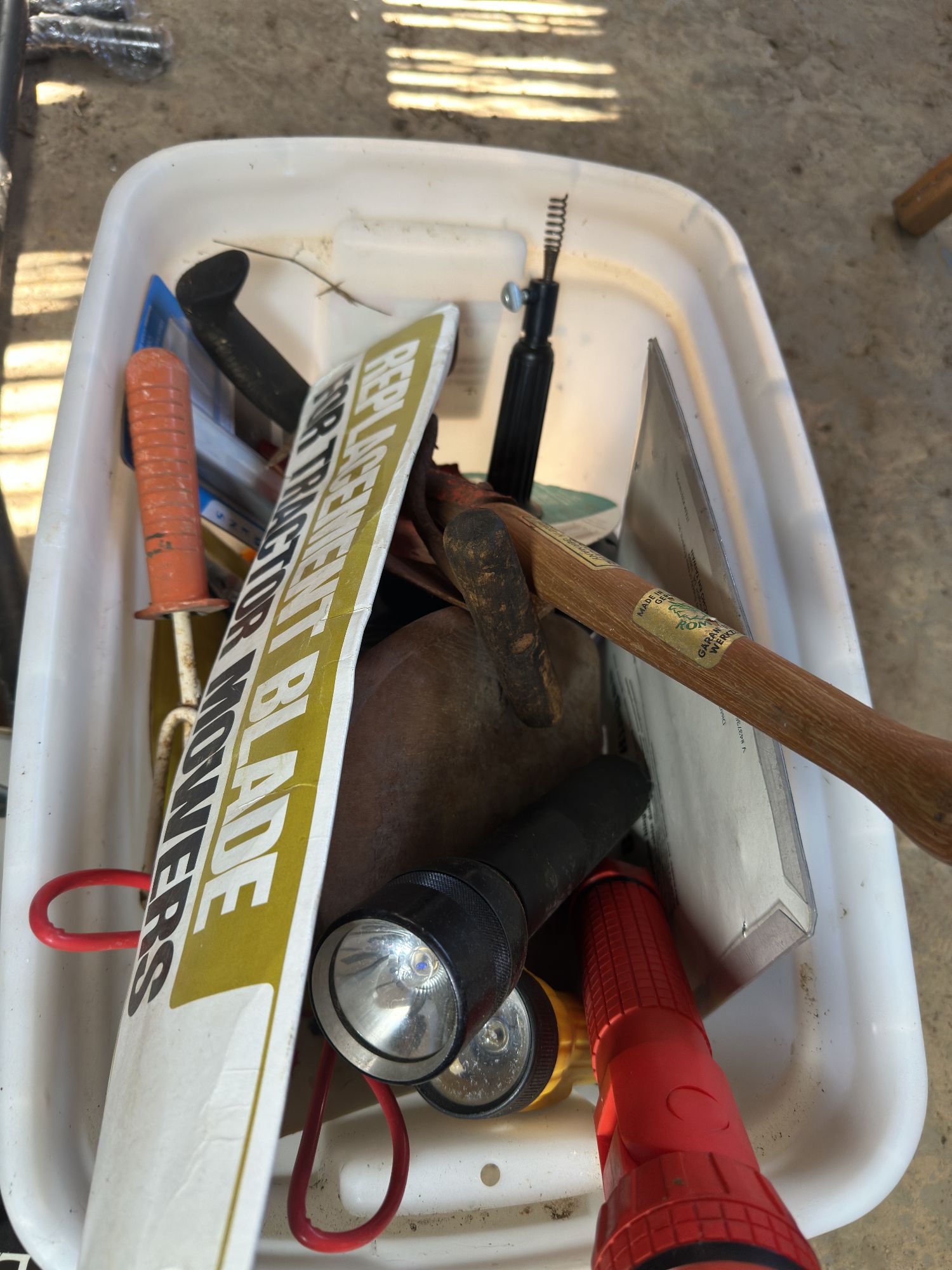 This lot contains a variety of tools and hardware. Includes flashlights and hand tools.
