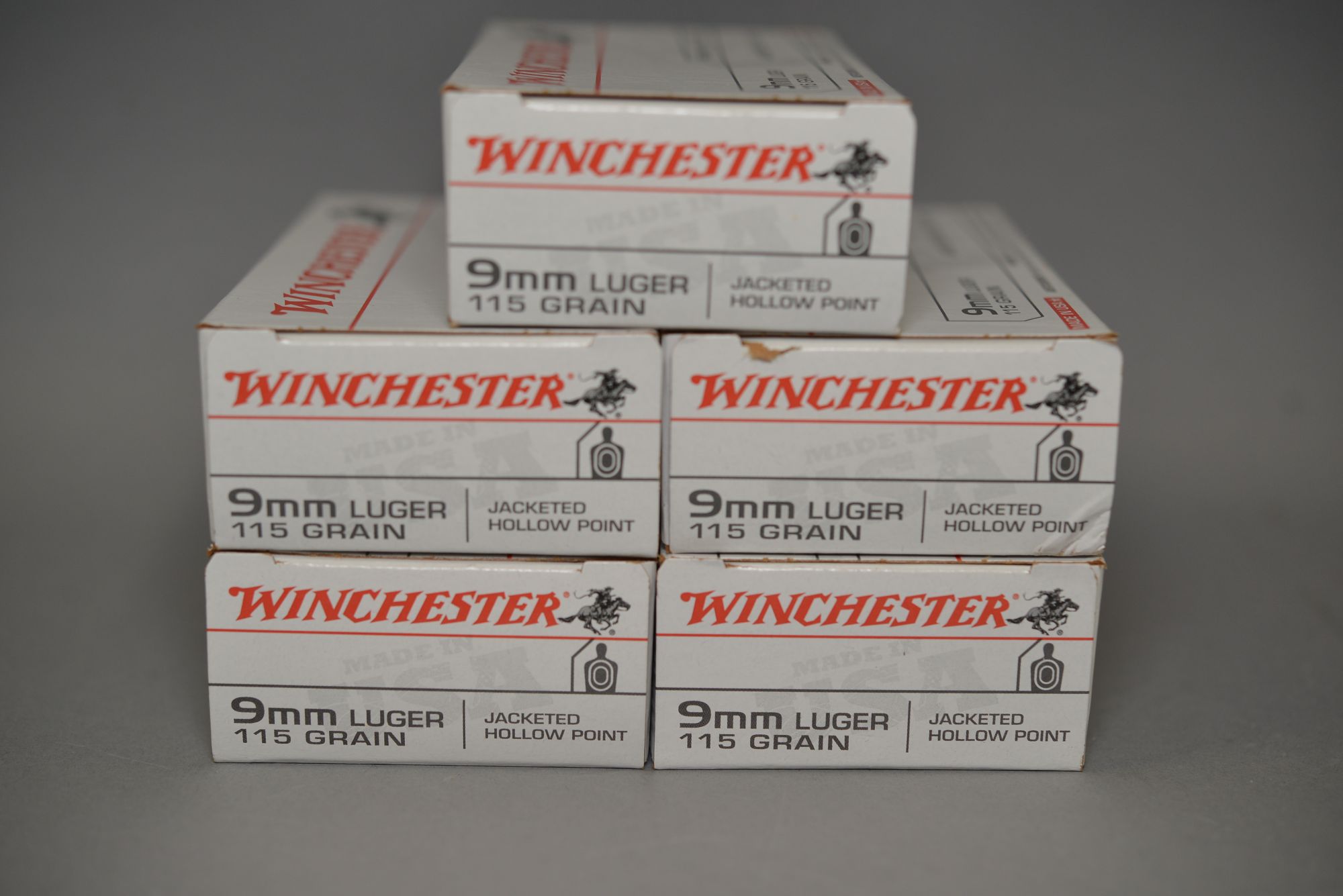 5 Boxes Of Winchester Personal Protection 9MM Luger Caliber Ammo,