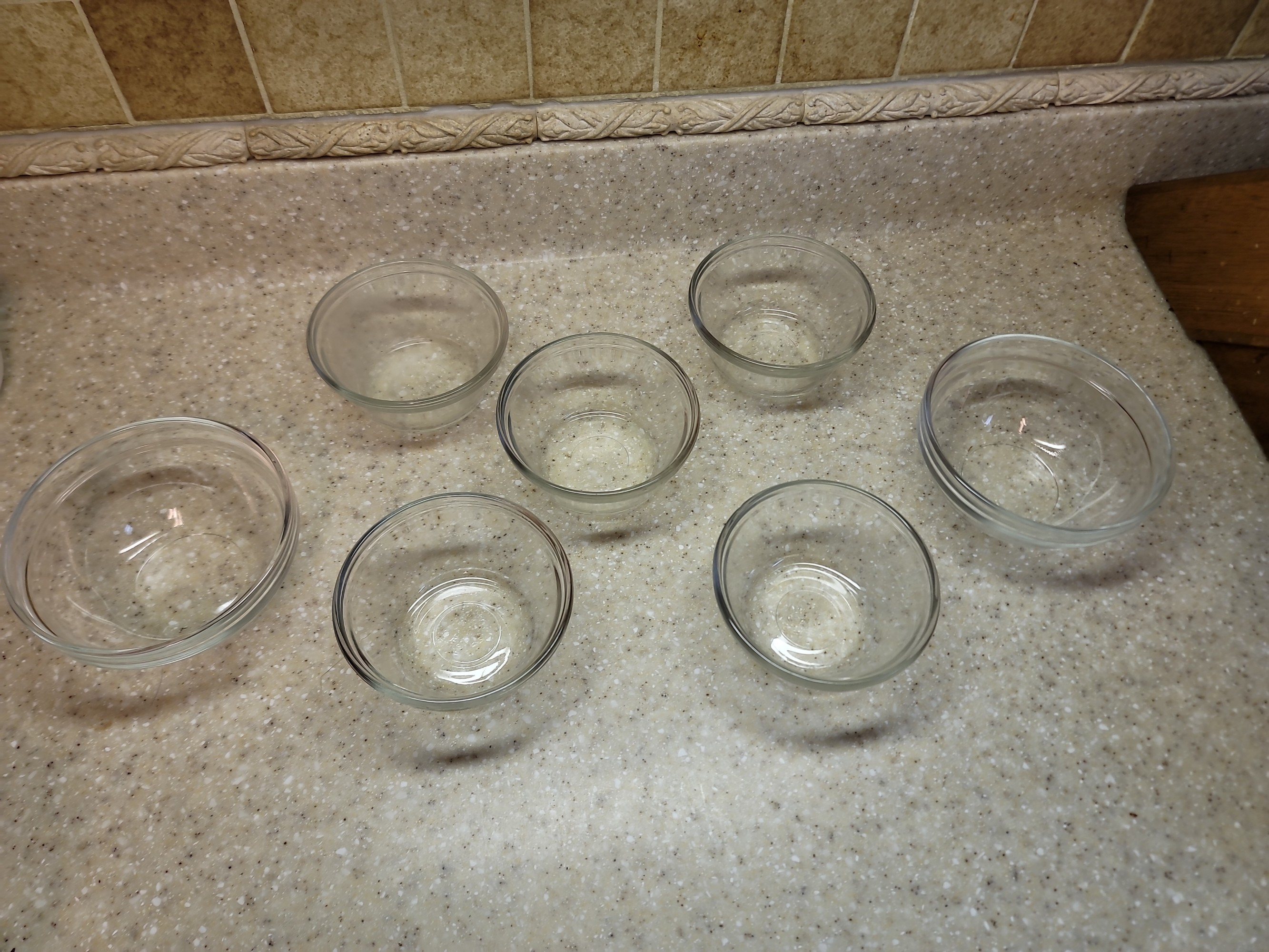 Vintage Fire King Custard cups, set of 5 and 2 larger glass bowls