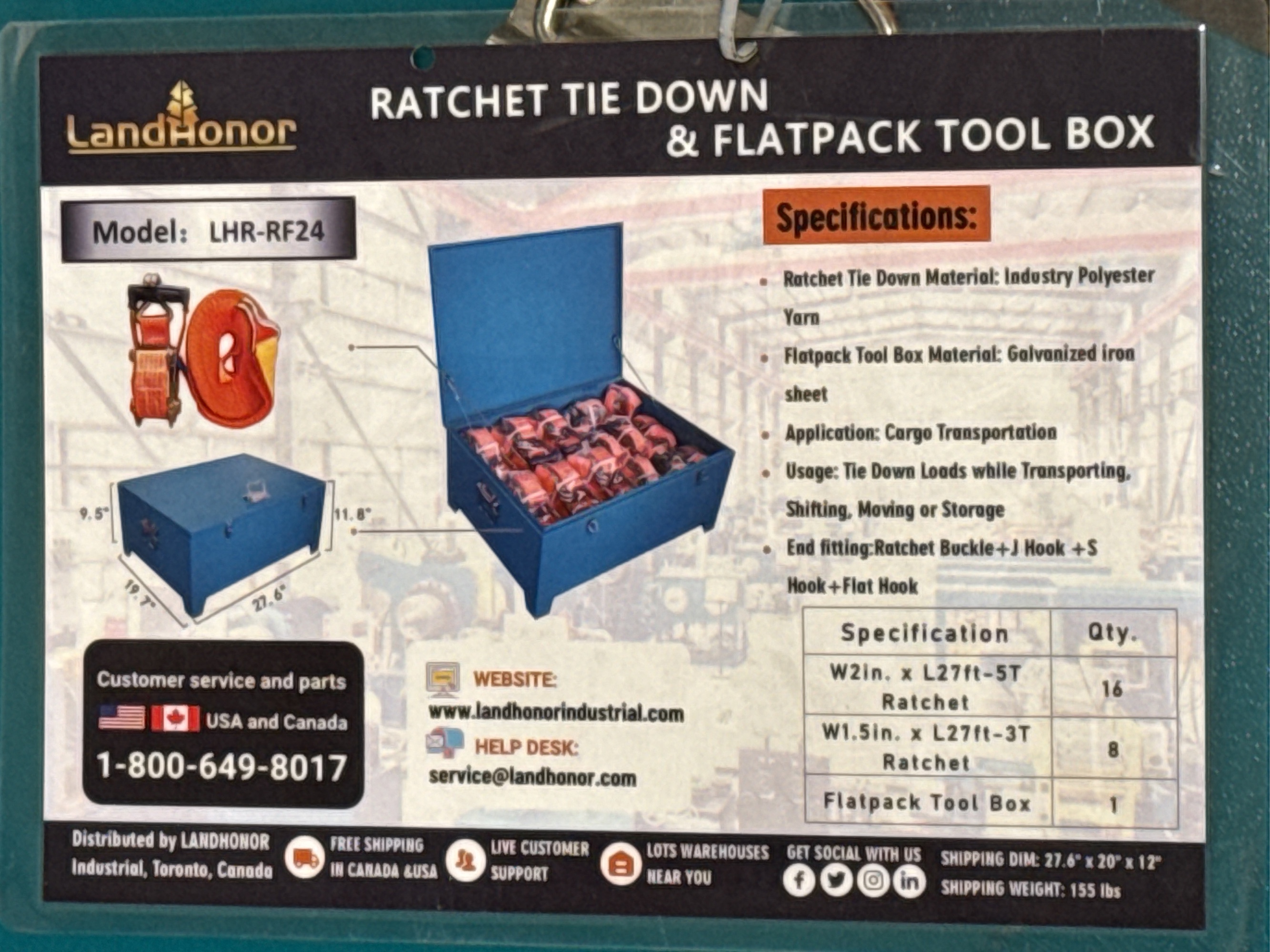 (24) 2024 LandHonor Ratchet Tie Downs & Flatpack Tool Box