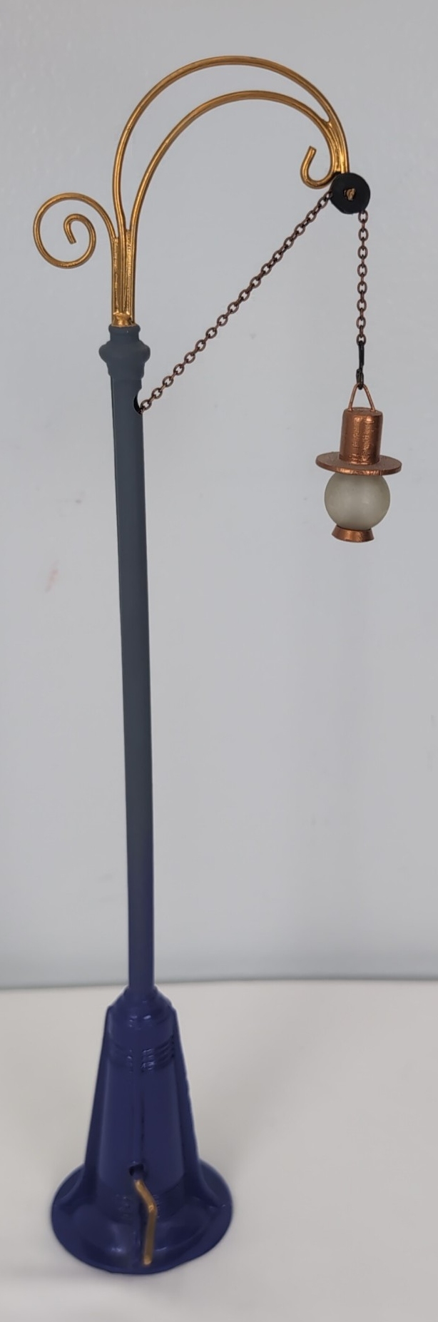 Prewar Bing 1/Wide Gauge street lamp with chain and crank handle for raising and lowering lamp. Beautifully restored to look C9. Lamp measures approximately 13-1/4 inches tall at highest point.