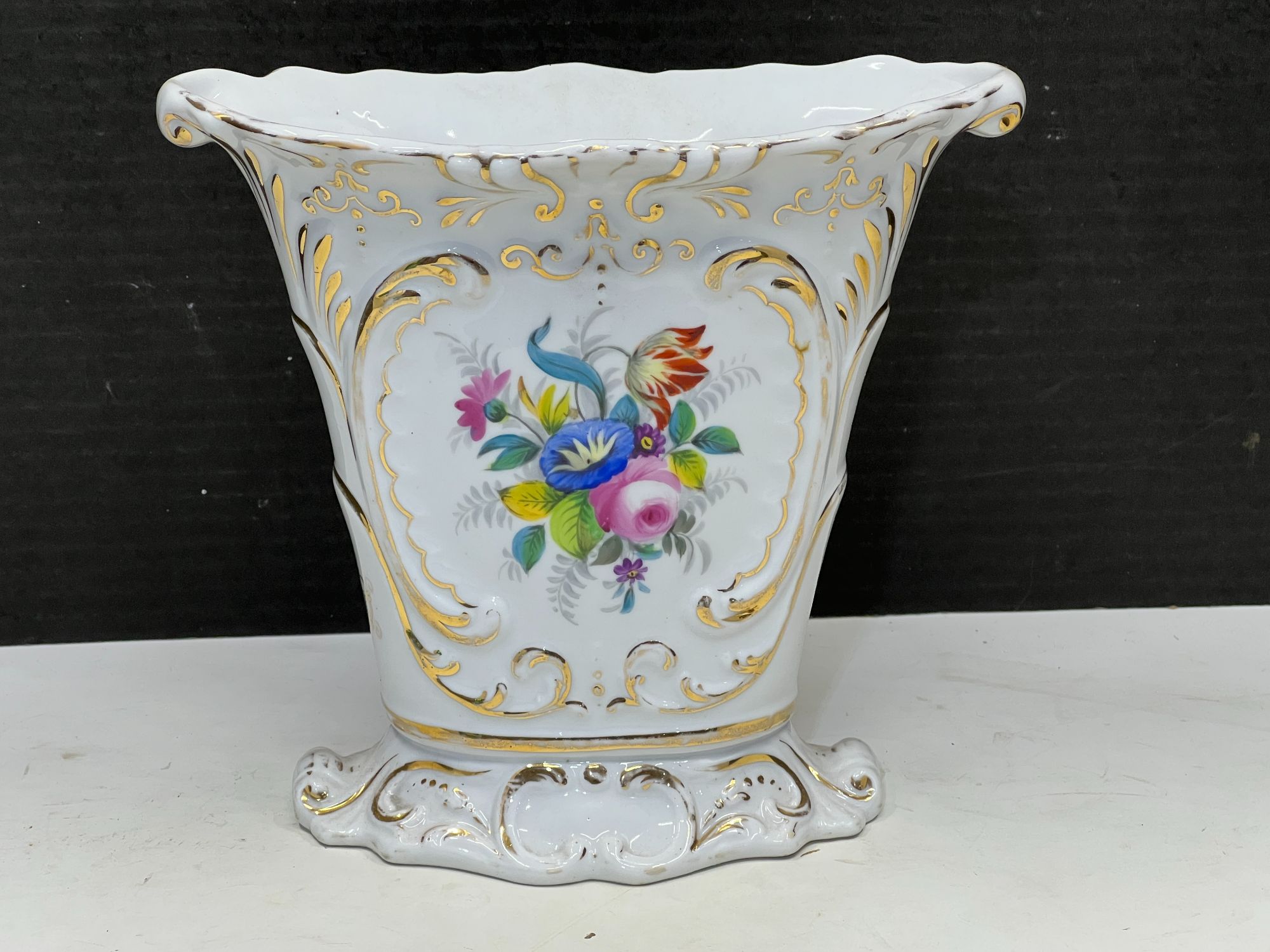 Antique/vintage Old Paris porcelain fan vase, has floral motif with gold trim, see pictures for details.