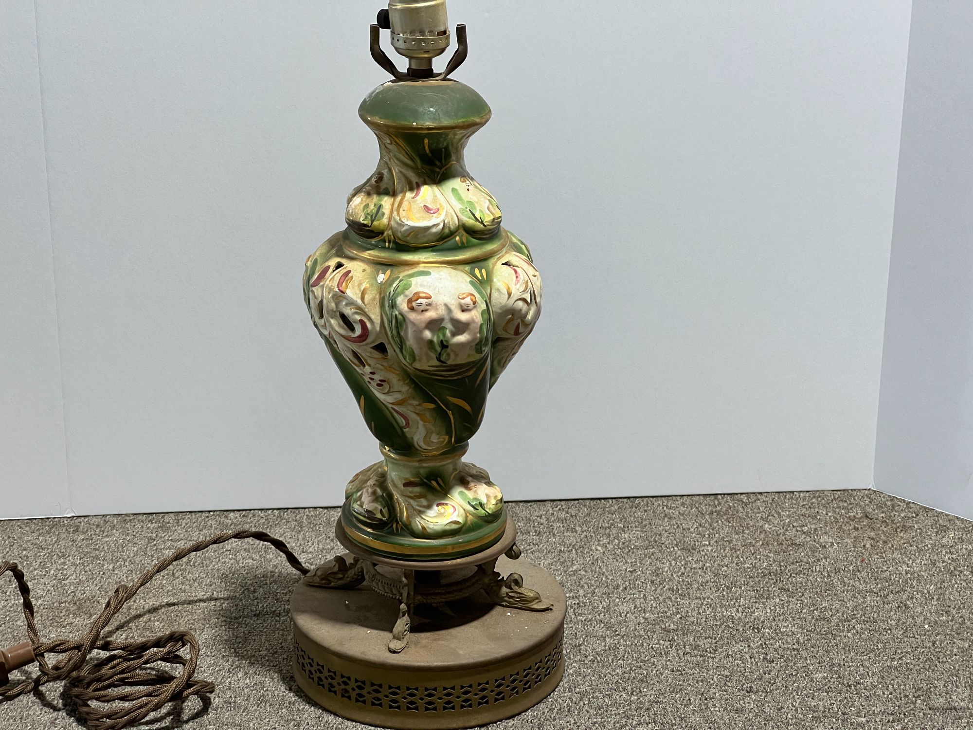 Vintage Capodimonte style porcelain cherub lamp with brass base, matches lot 2177, see pictures or details.