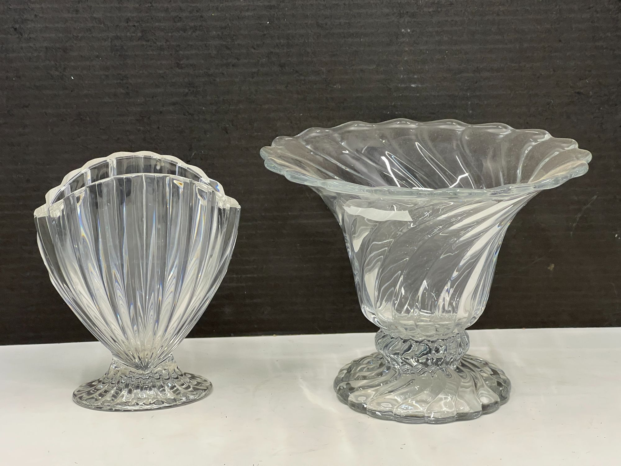 Beautiful fan vase, “Marquis” by Waterford, also includes a lovely ribbed flared vase, believed to be Fostoria, see pictures for details.