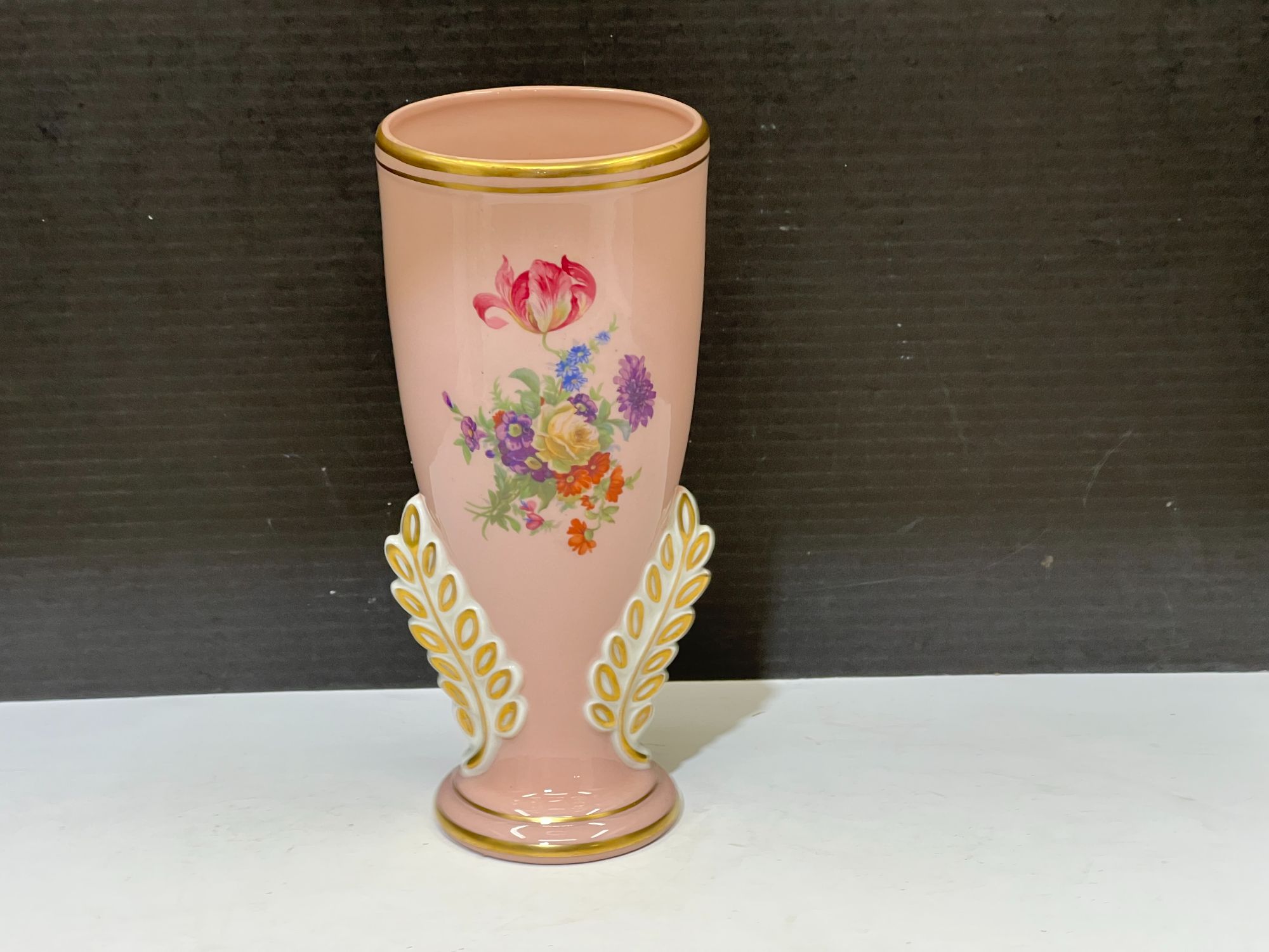 Antique/vintage porcelain vase with gold trim, has lovely floral motif, see pictures for details.