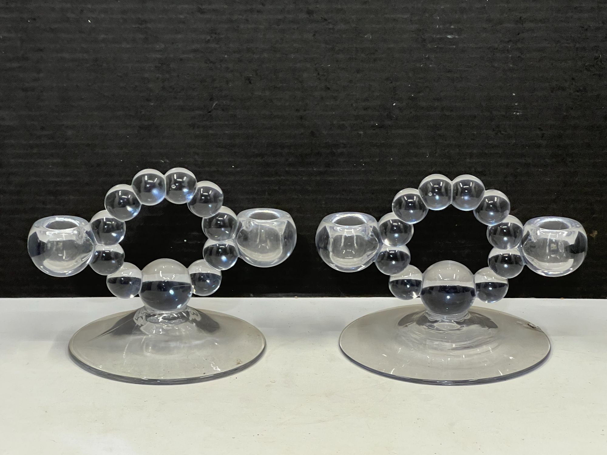 Vintage double taper candle holders, believed to be vintage Imperial glass, “Candlewick”, set of two, see pictures for details.