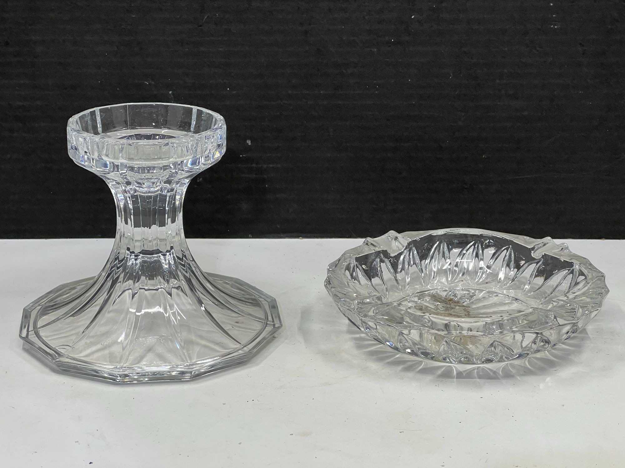 Lovely crystal candlestick holder, believed to be Imperial crystal, there is a small chip on the base, also includes an Italian glass ashtray, see pictures for details.