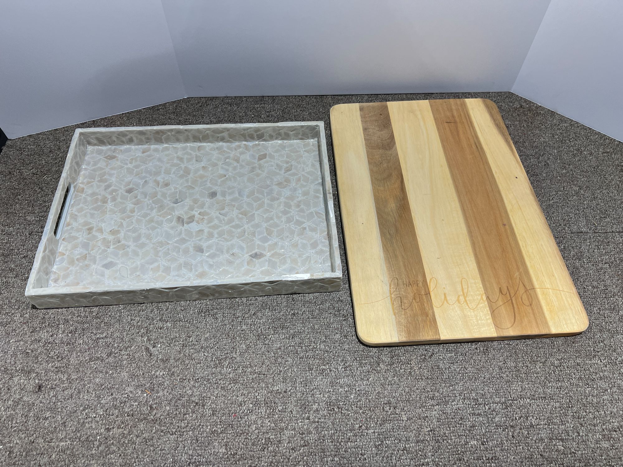 Textured serving tray and cutting board, two pieces, see pictures for details.