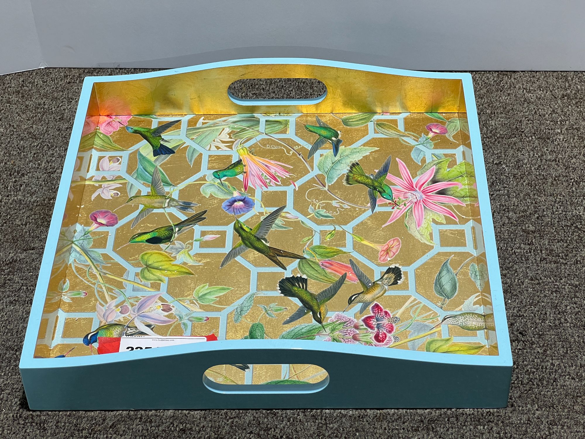 Caspari lacquered tray with hummingbird motif, see pictures for details.