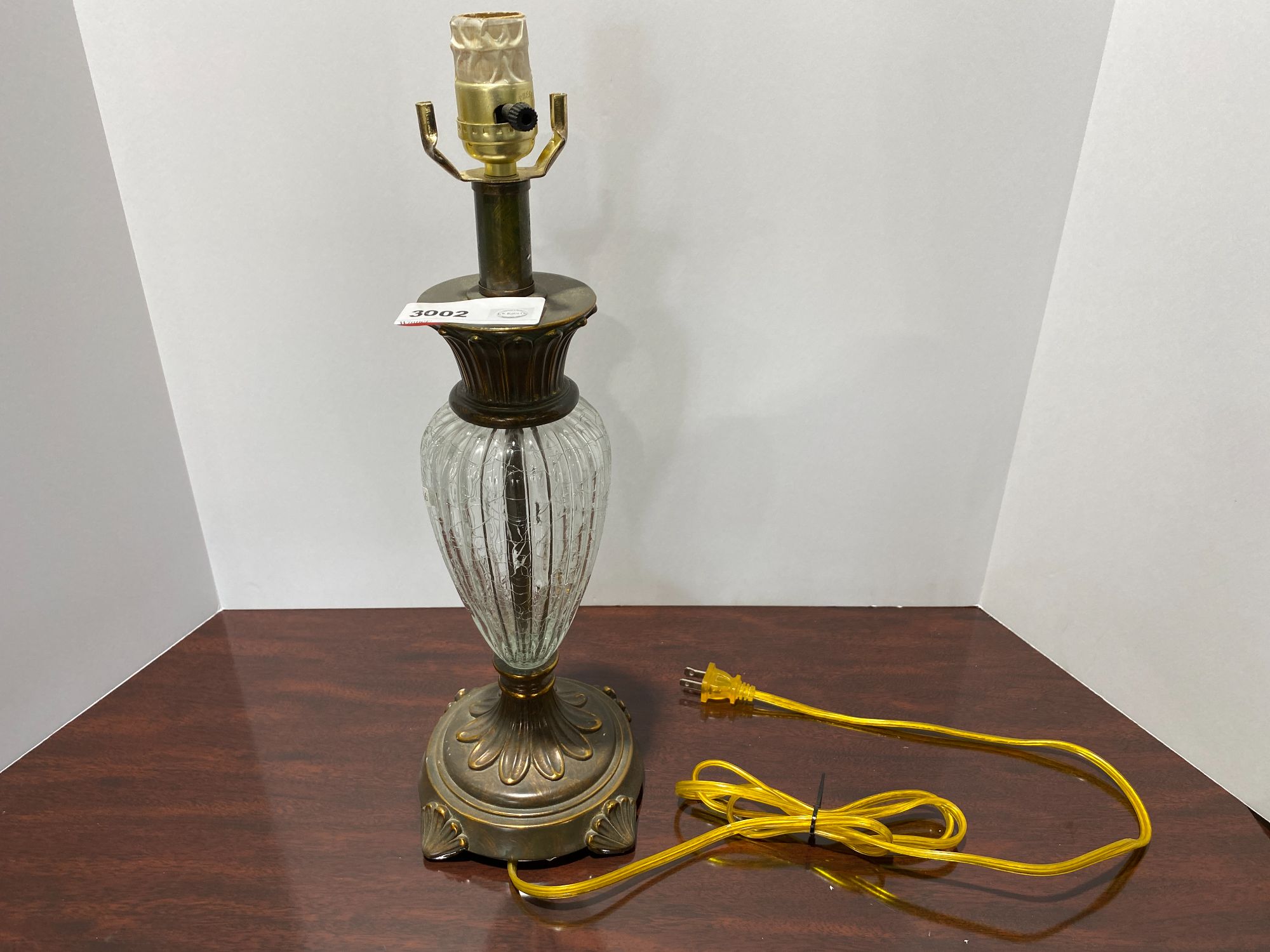 Vintage crackle glass lamp with brass accents, see pictures or details.