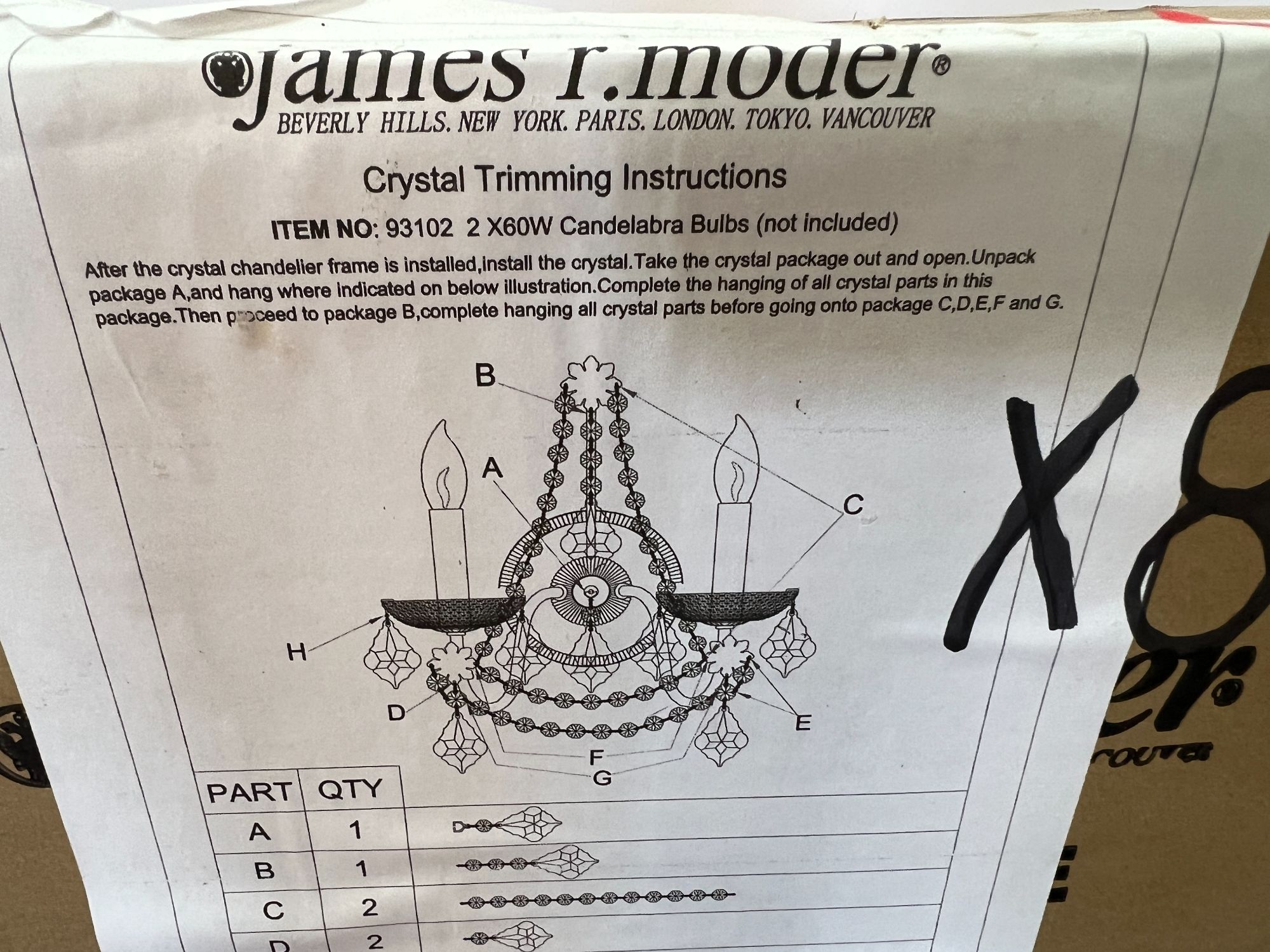 James R Moder sconce crystal chandelier, still in original box, see pictures for details.