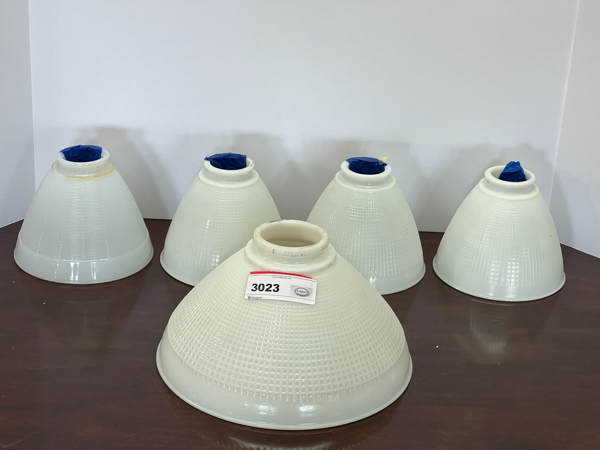 Vintage milk glass lampshades, five pieces, believed to be vintage Corning, see pictures for details.