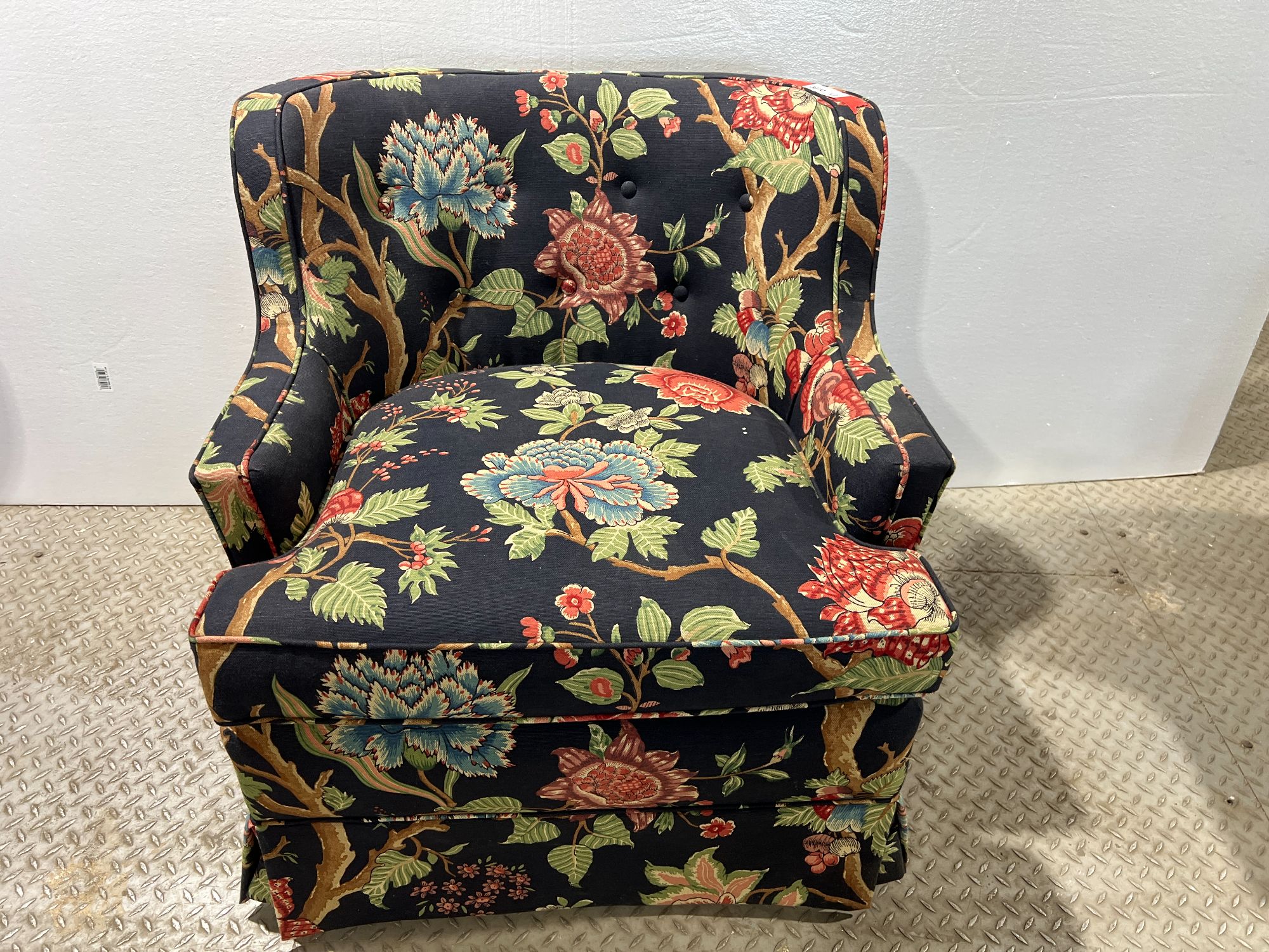 Nice curve back skirted easy armchair with floral motif, see pictures for details.