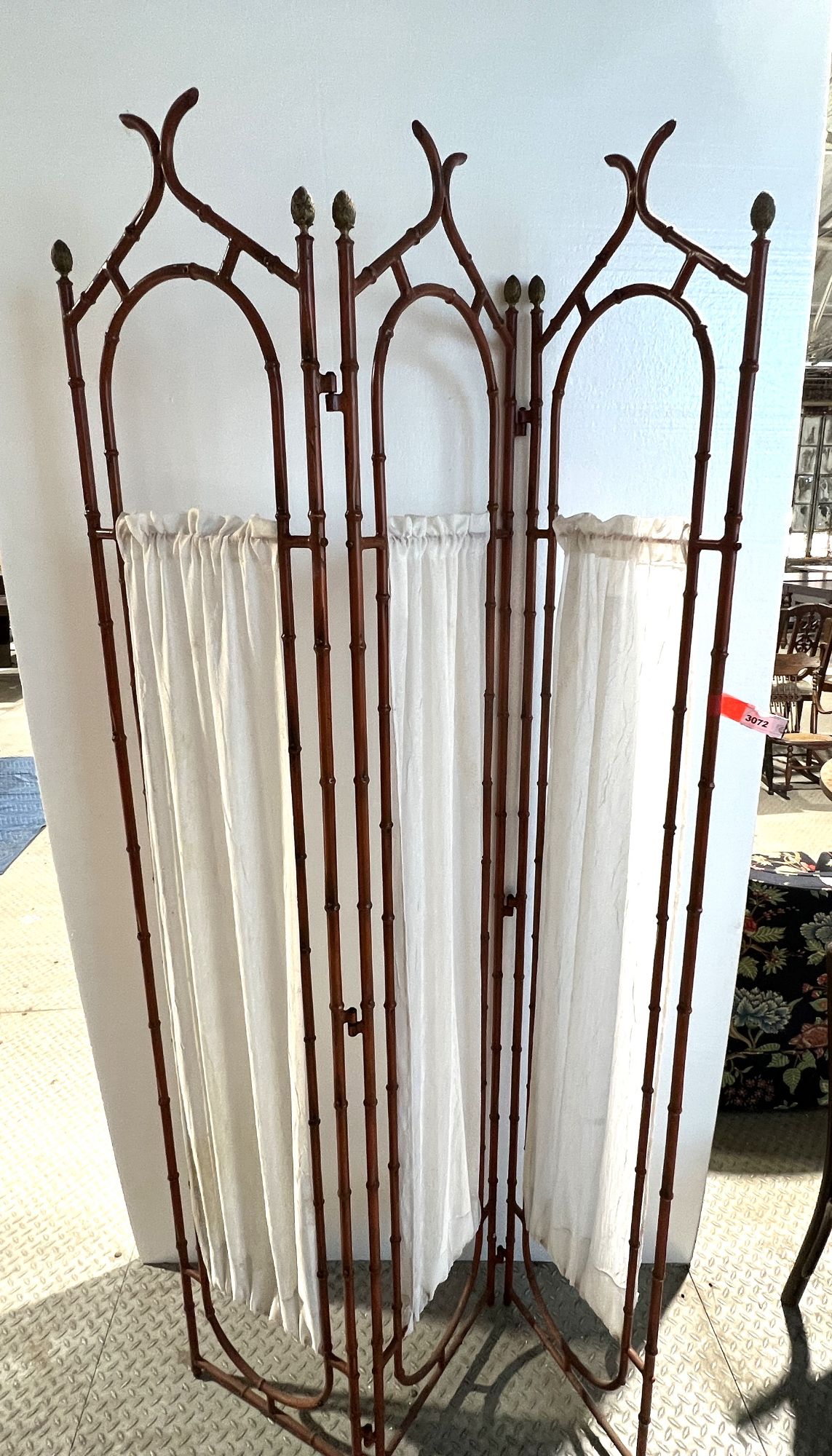 Vintage metal, pagoda style three panel room divider, panels have bamboo look, see pictures for details.