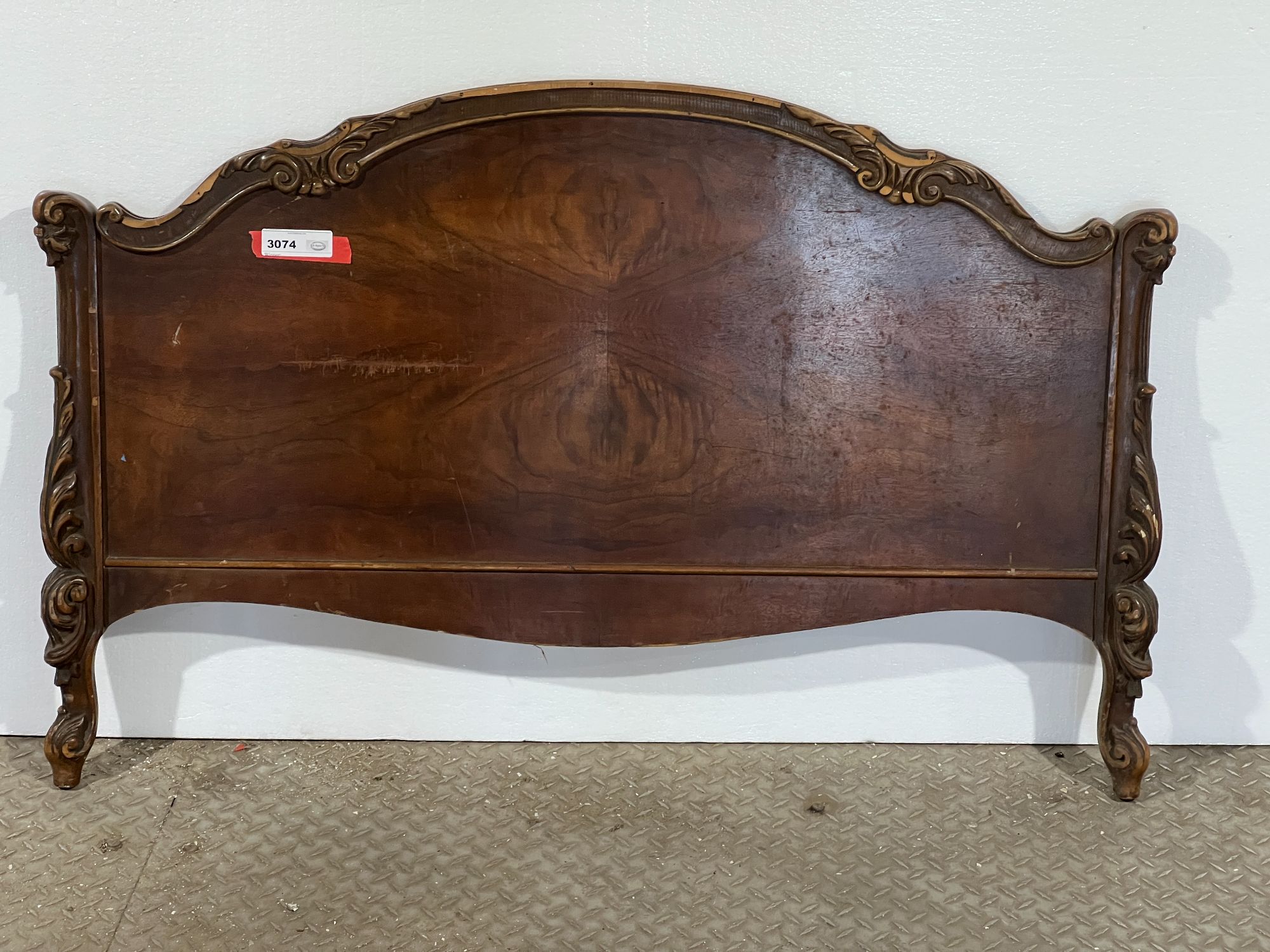 Vintage footboard with lovely carvings, great repurposing project, a couple of decorative carved pieces have broken off, see pictures for details.