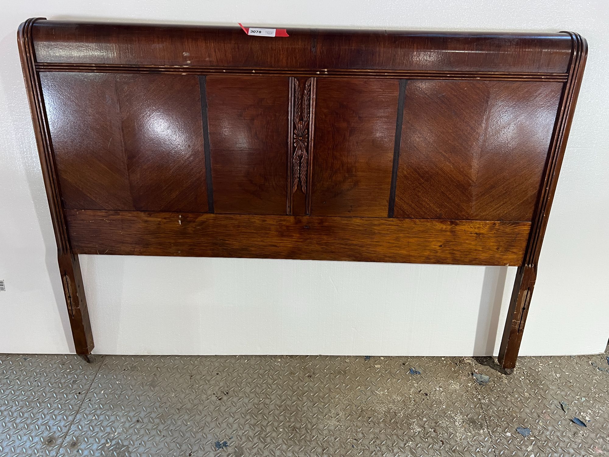 Lovely vintage art deco waterfall style headboard with lovely carving, this piece has wheels, see pictures for details.