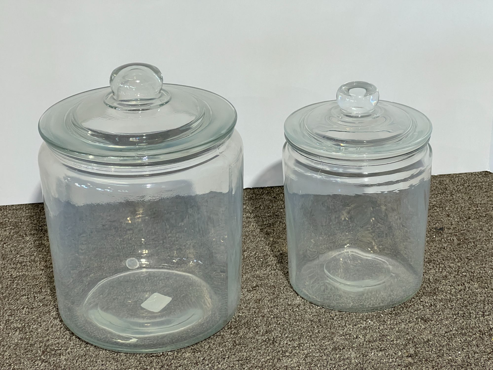 Apothecary style storage jars with lids, two pieces, see pictures or details.