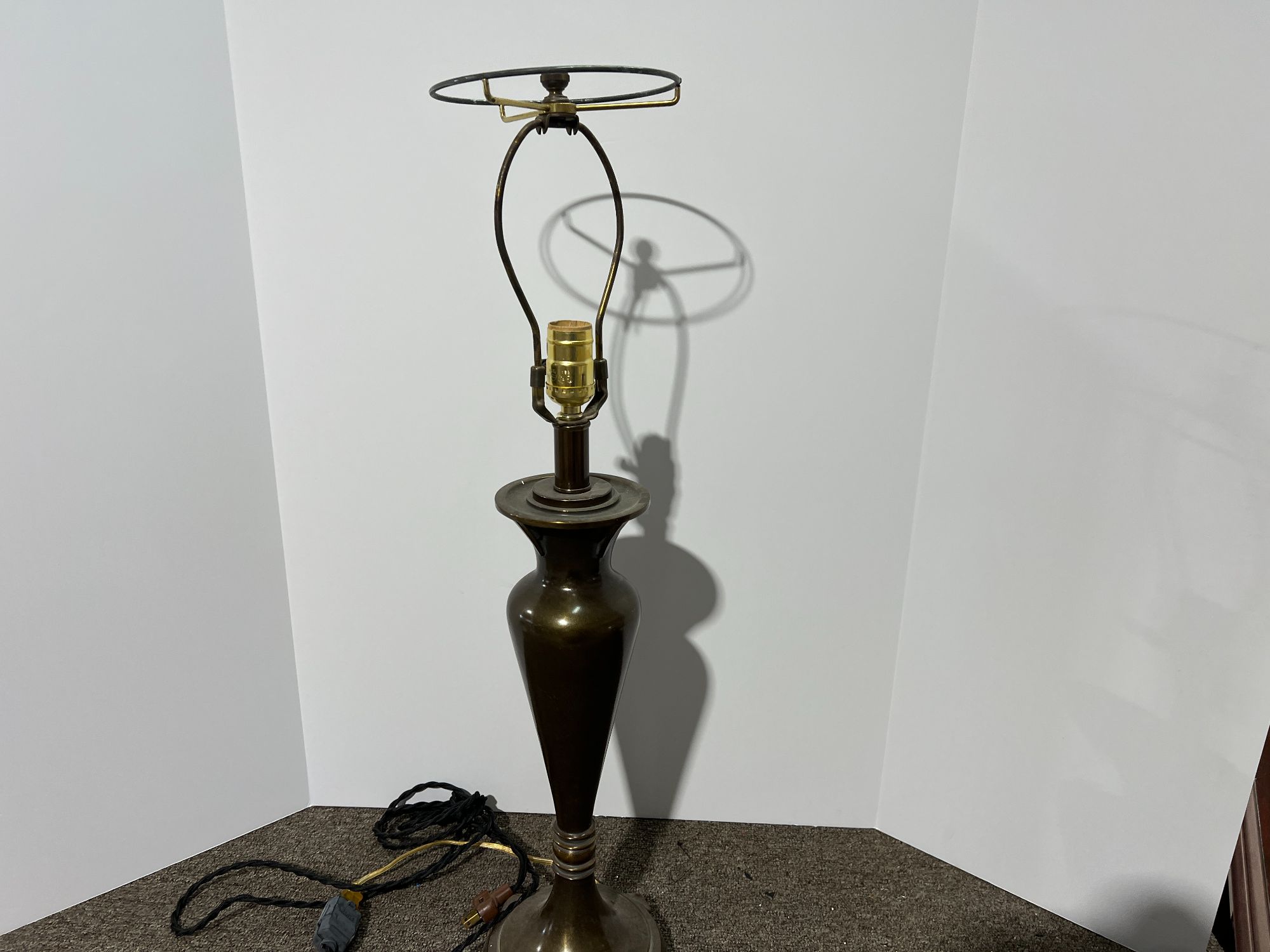 Vintage tapered art deco brass lamp, see pictures for details.