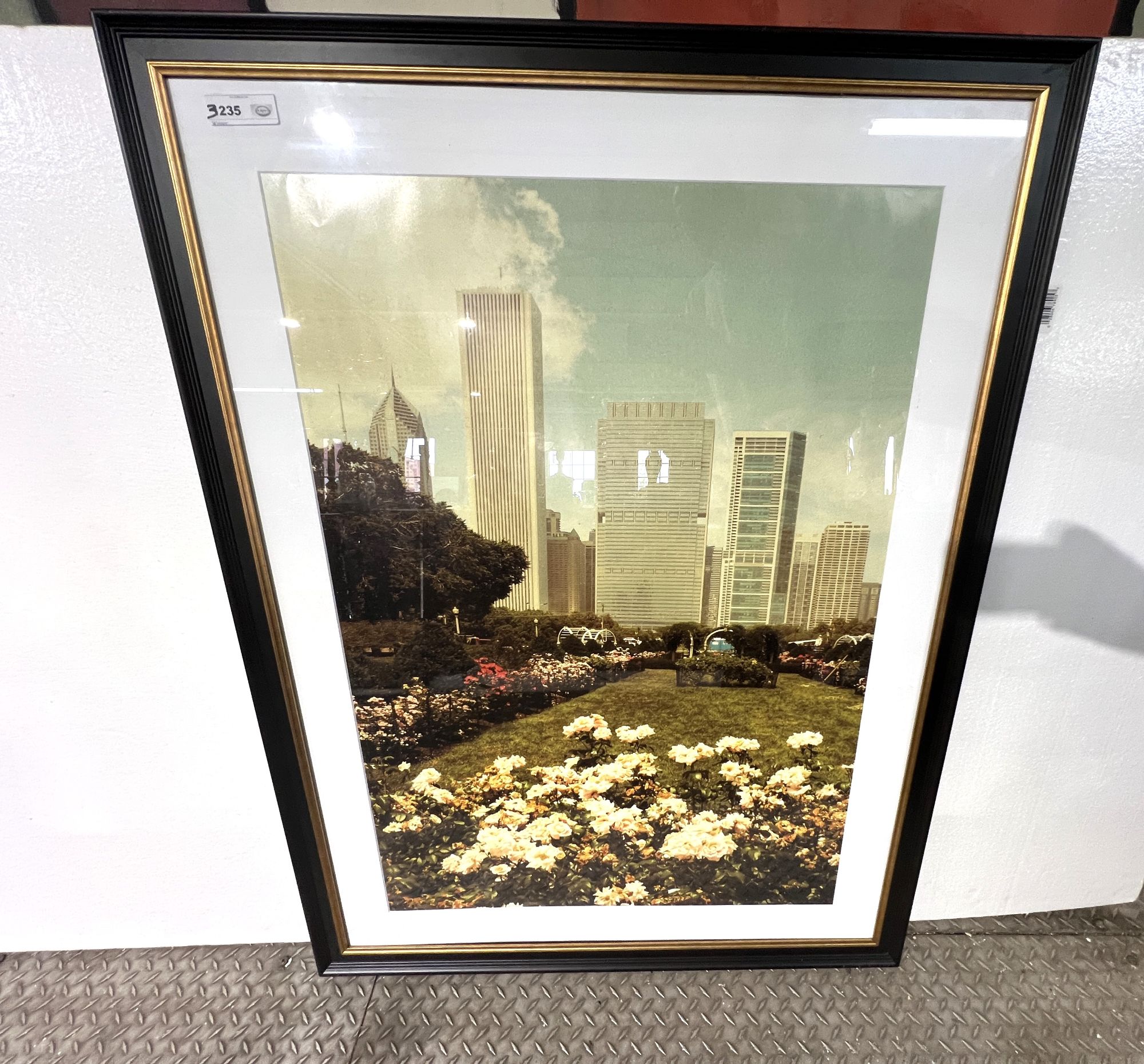 Framed and matted photographic print, believed to be Grant Park in Chicago, see pictures or details.