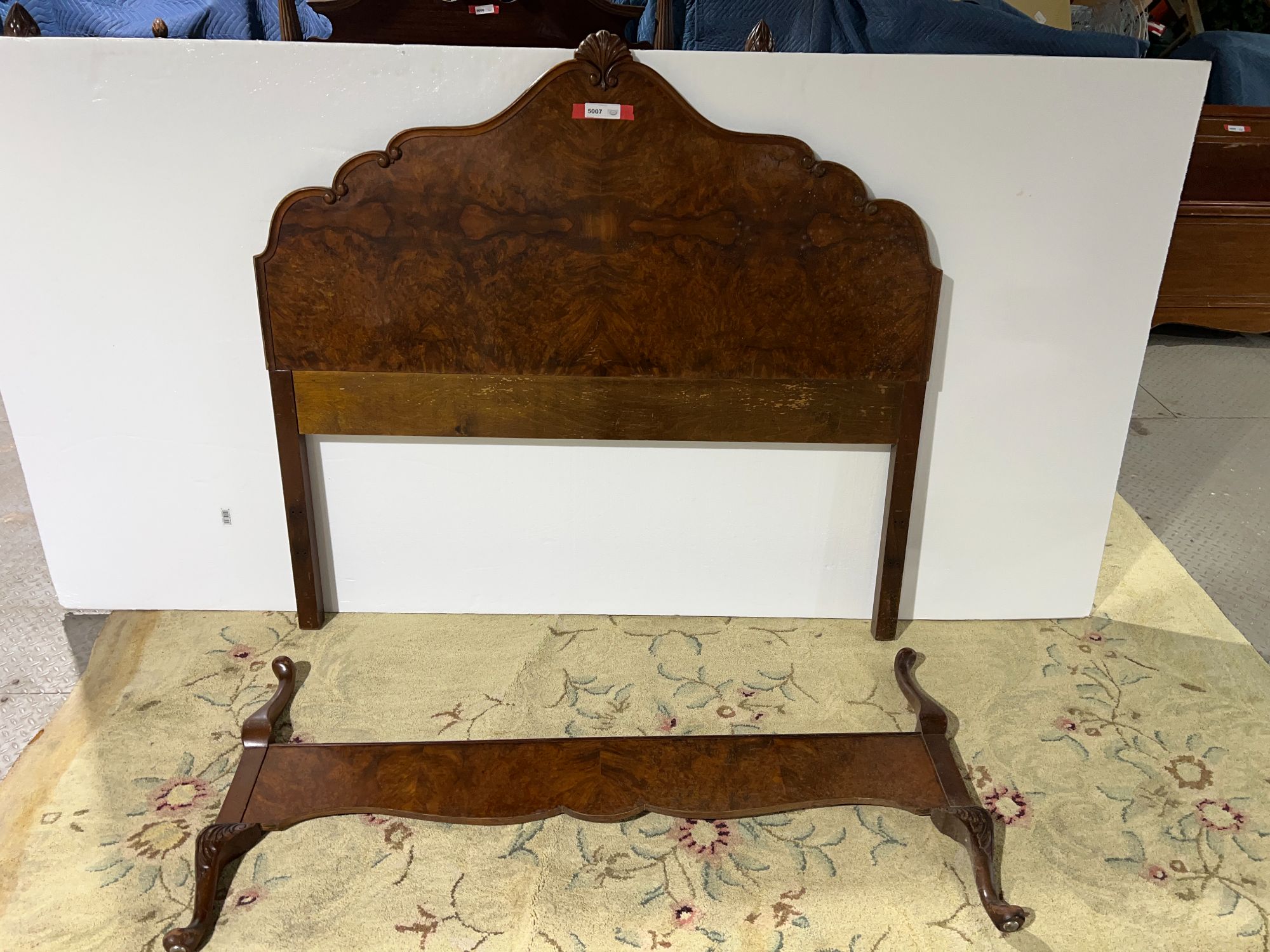 Vintage/antique Queen Anne style bed, includes headboard and footboard, appears to be a burlwood veneer, see pictures for details.