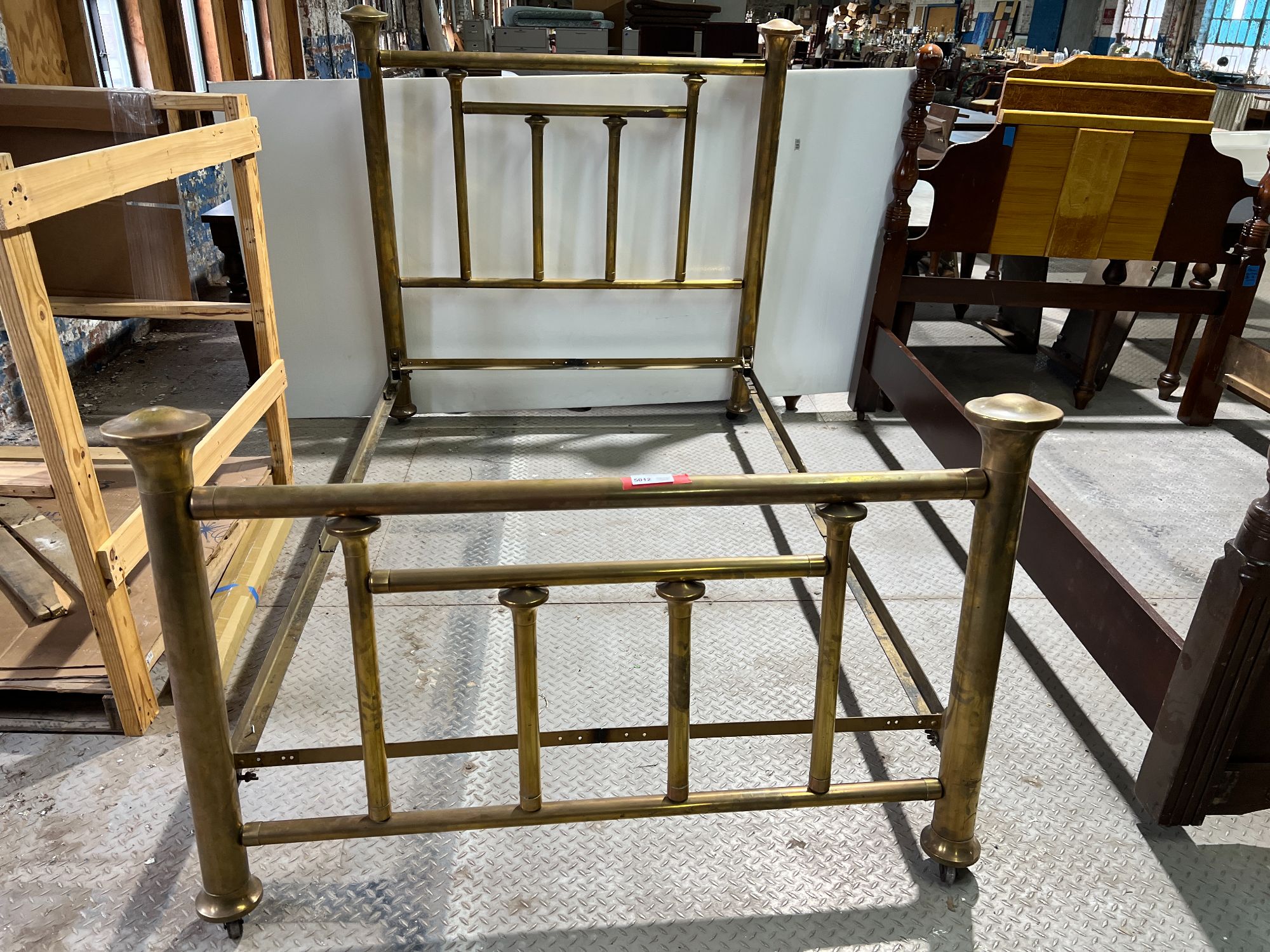 Vintage brass bed, includes headboard, footboard, and rails. See pictures for details.