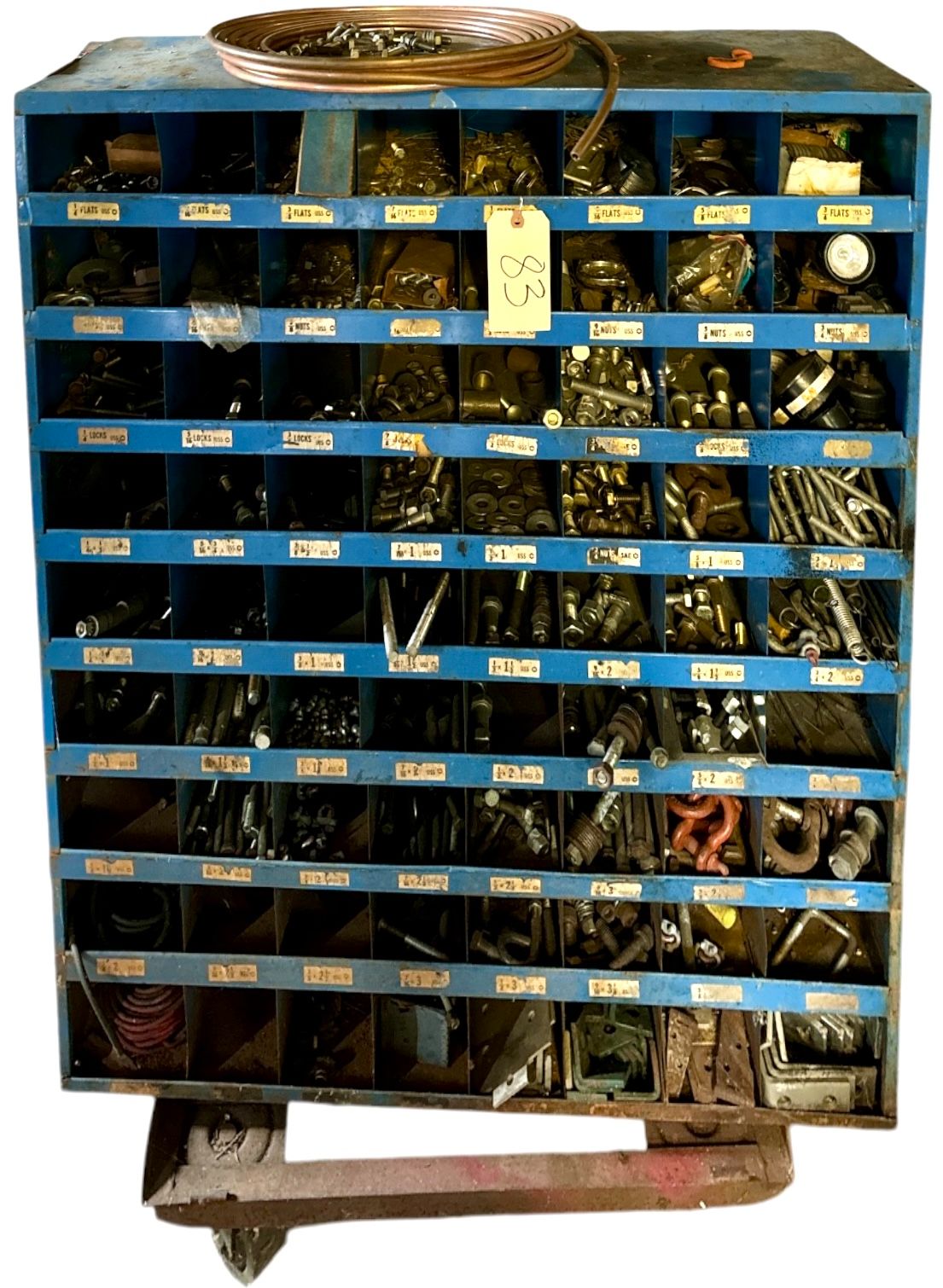 METAL BOLT AND SCREW SORTER W/ METAL DOLLY AND COIL OF COPPER WIRE