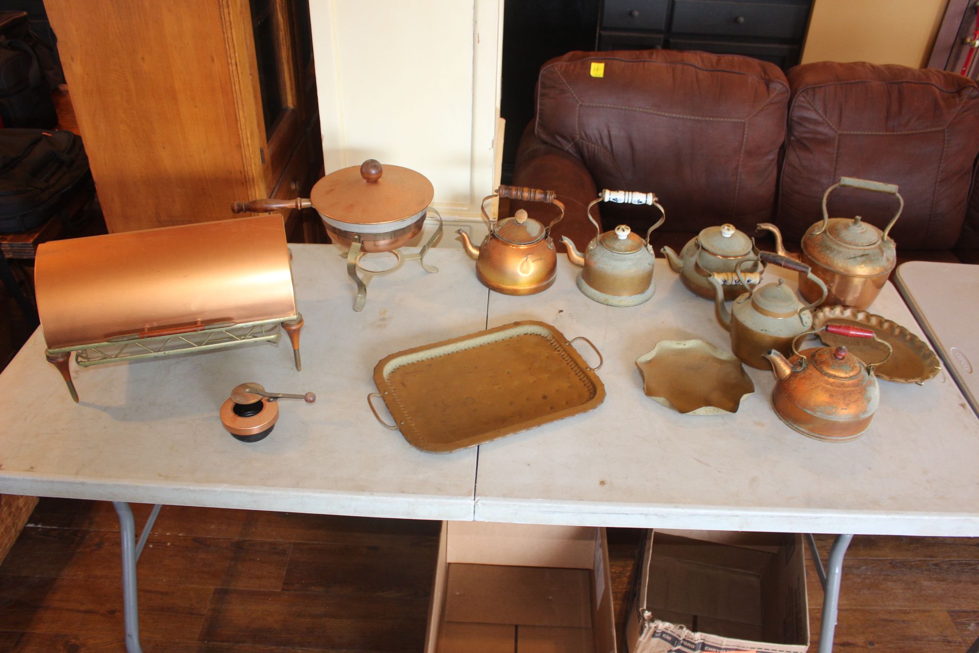 Copper Tea Pots, Chafing Dish, Serving Tray, and Buffet Warmer