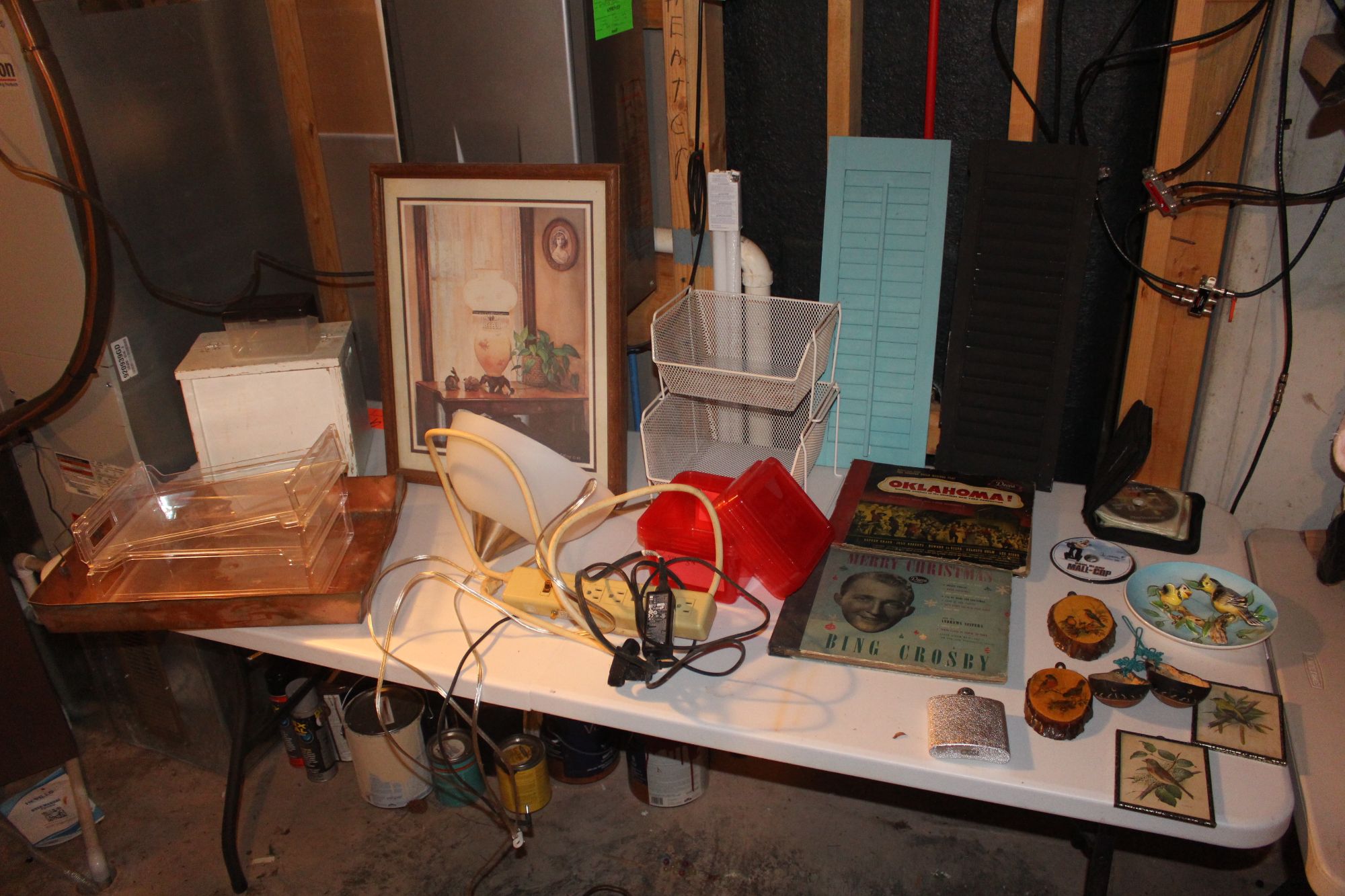 Desktop Organizer, Decorative Shutters, Flip Top Wooden Box, Disk Holder, Decorative Plates, Copper Serving Tray, Power Strip, and Misc.