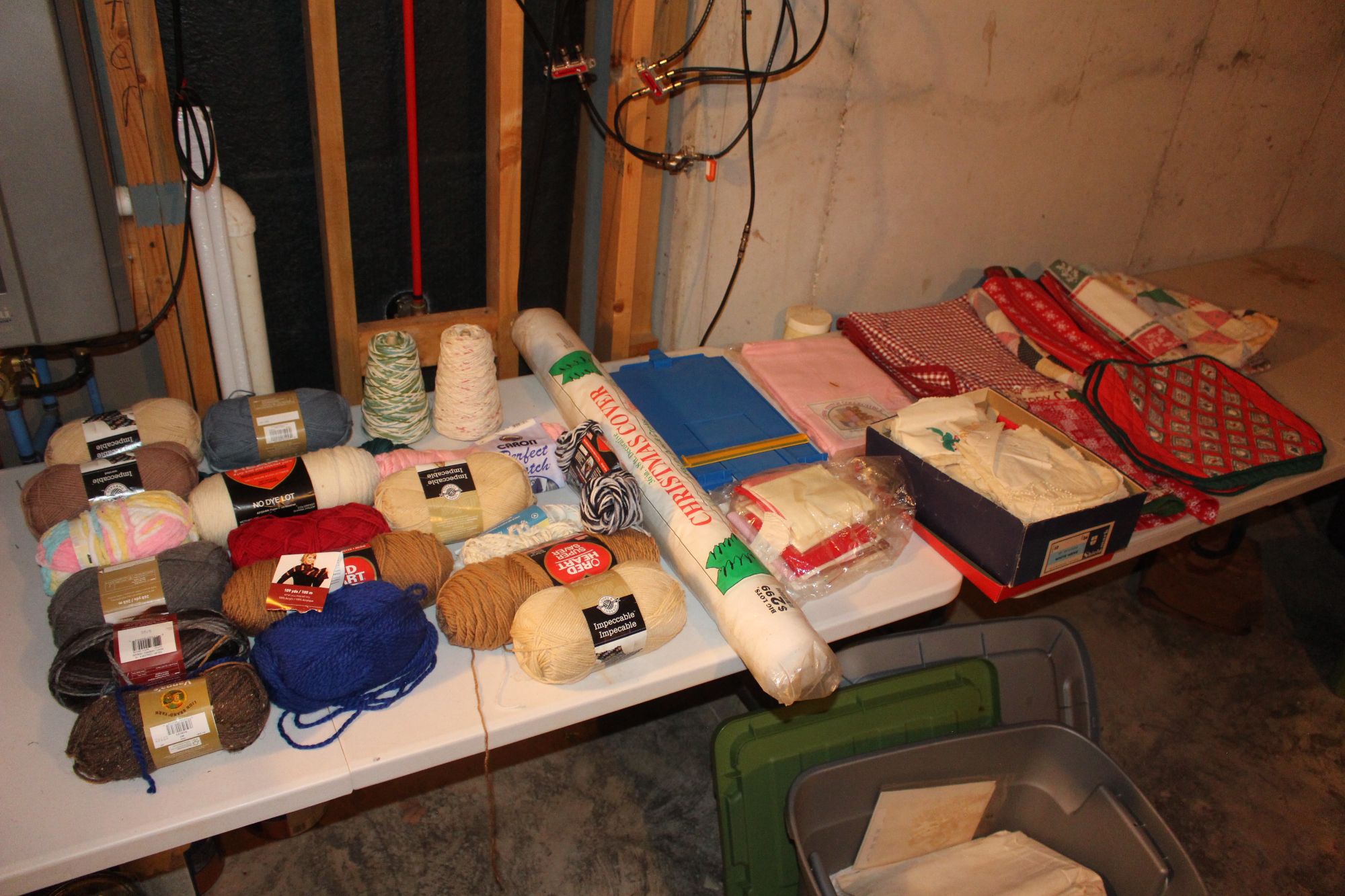 Yarn, Place Mats, Quilting Pieces, Fabric, Material, Afgan, Hand Bags, 36 in x 8 ft Christmas Cover, Thread, and Misc.