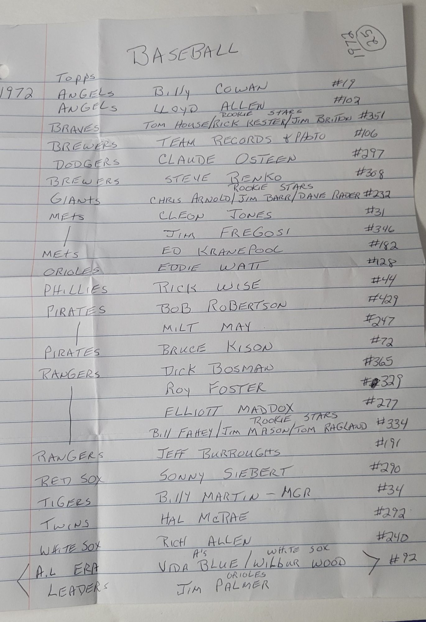 1972 TOPPS BASEBALL CARDS - SEE PHOTOS FOR CONTENT LIST.