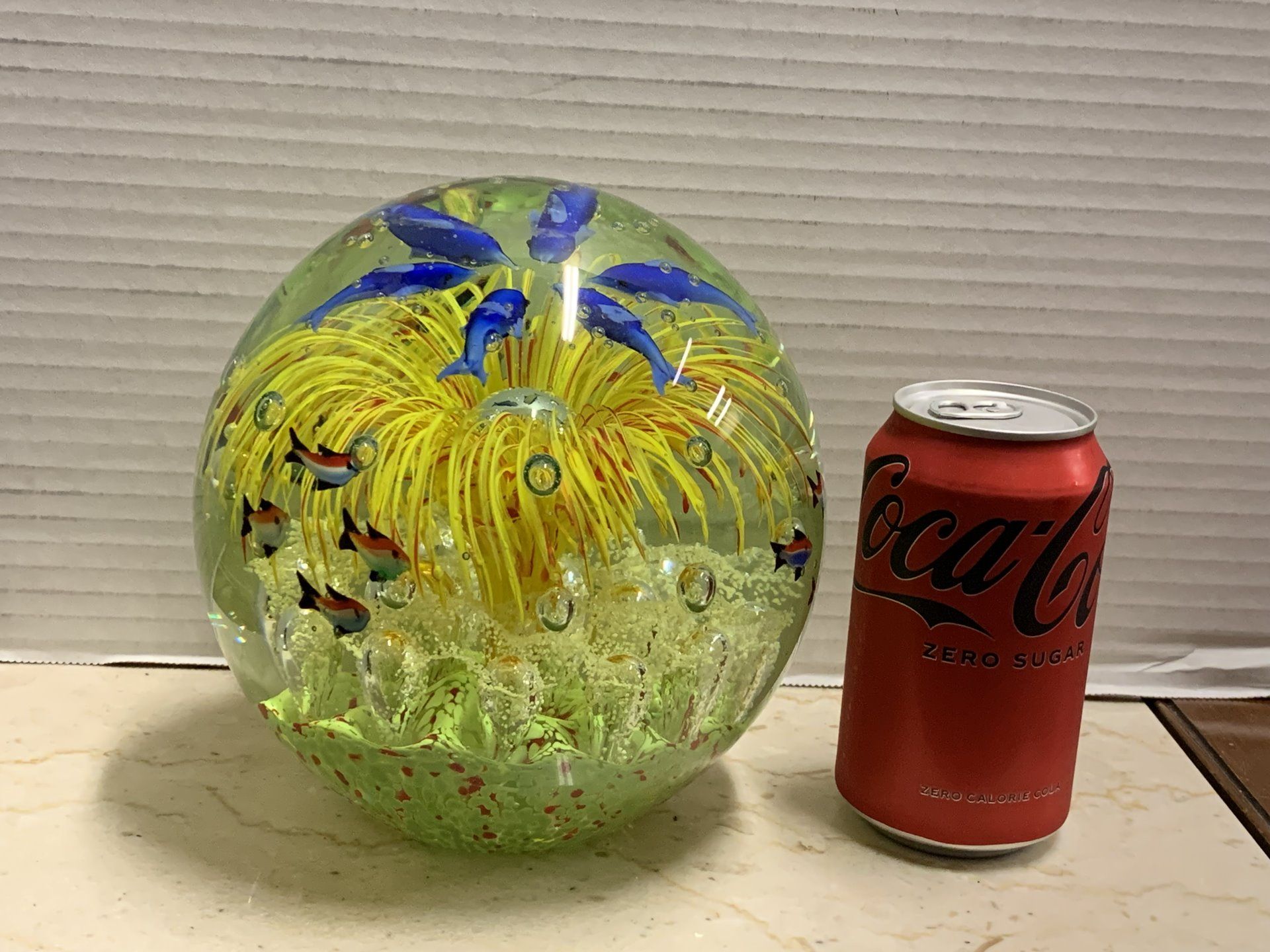 GORGEOUS BIG DOLPHIN AND FISH SEA MURANO ITALIAN ART GLASS AQUARIUM PAPERWEIGHT 6" TALL X 6 1/2" WIDE