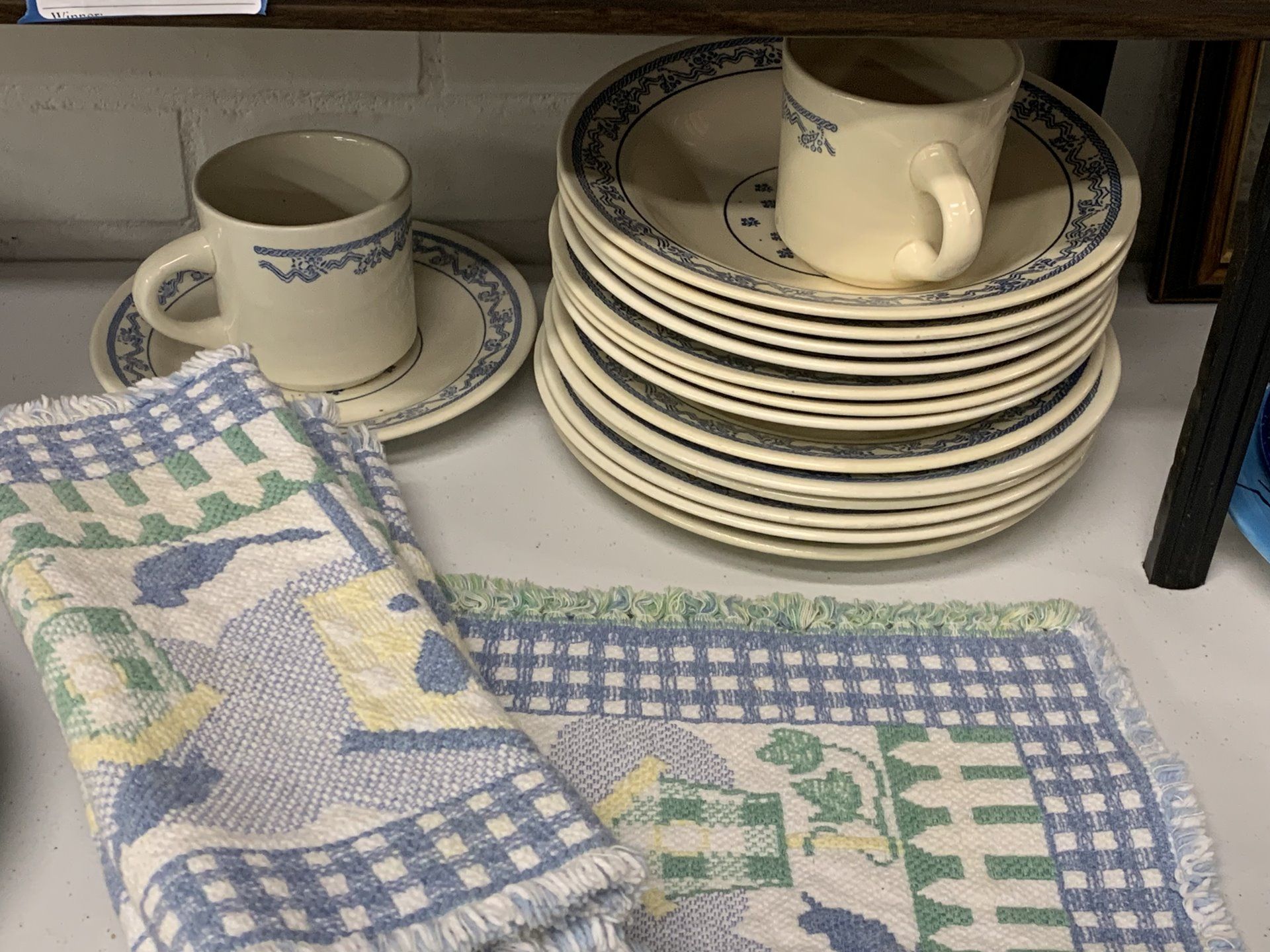 17 PIECES VINTAGE OXFORD BLUE/WHITE CHINA & 5 PLACEMATS