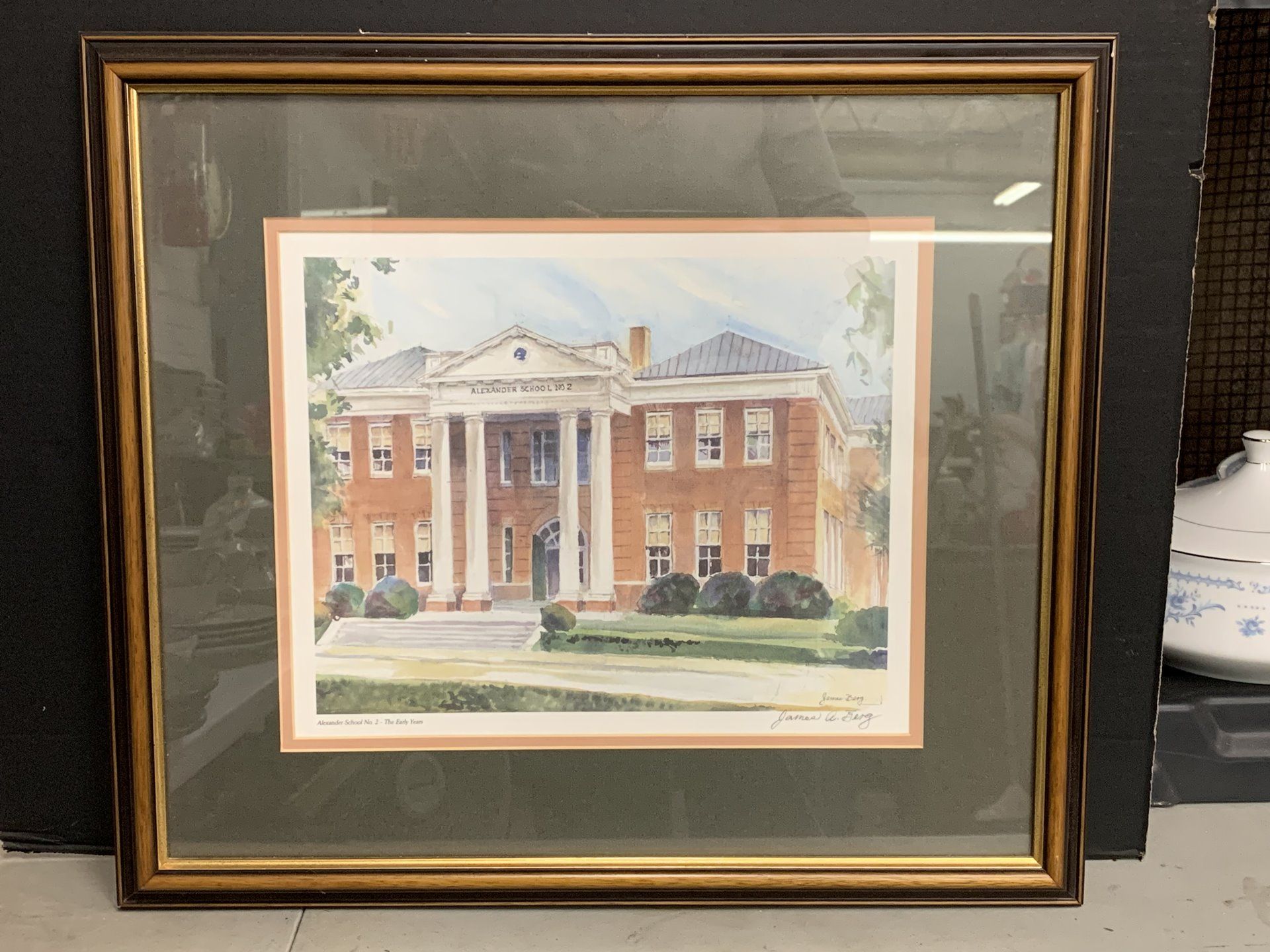 ALEXANDER 2 SCHOOL SIGNED PRINT BY JAMES BERG MATTED/FRAMED 19X17