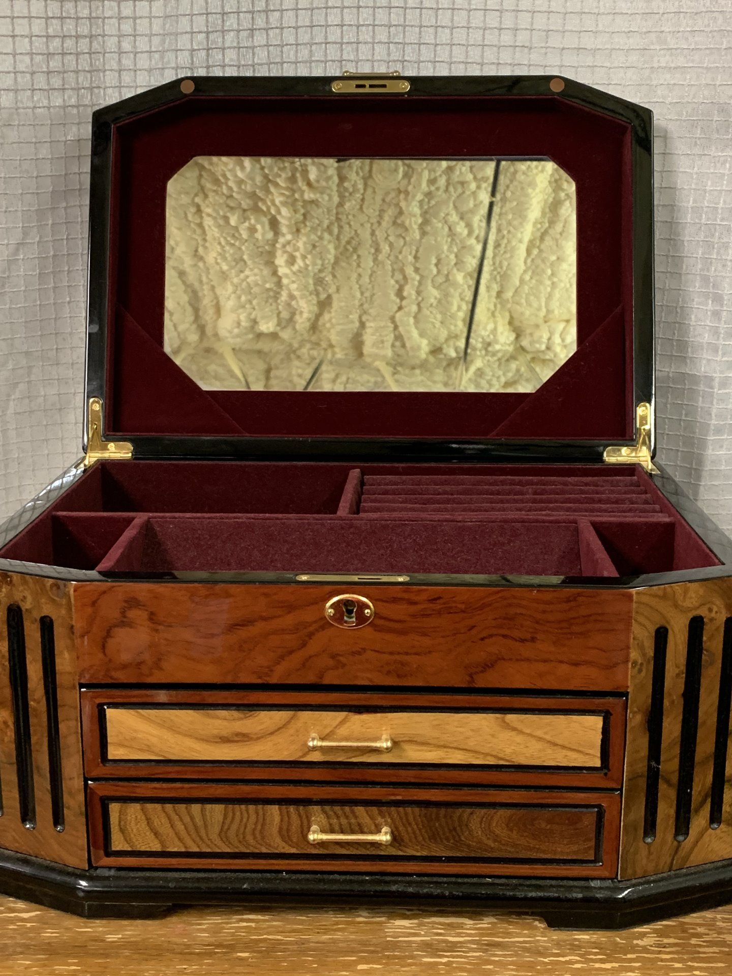 HANDCRAFTED WOODEN JEWELRY BOX 16" X 11" X 8 1/2" TALL