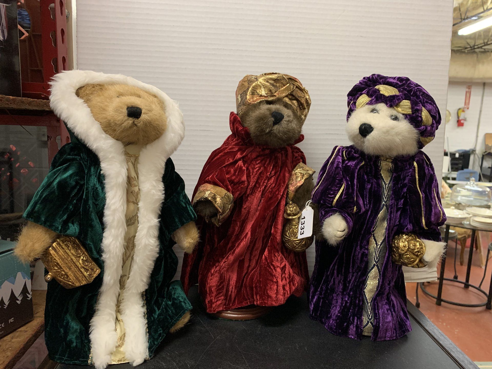 THREE 1999 CHRISTMAS COLLECTIBLE BEARS ON STANDS