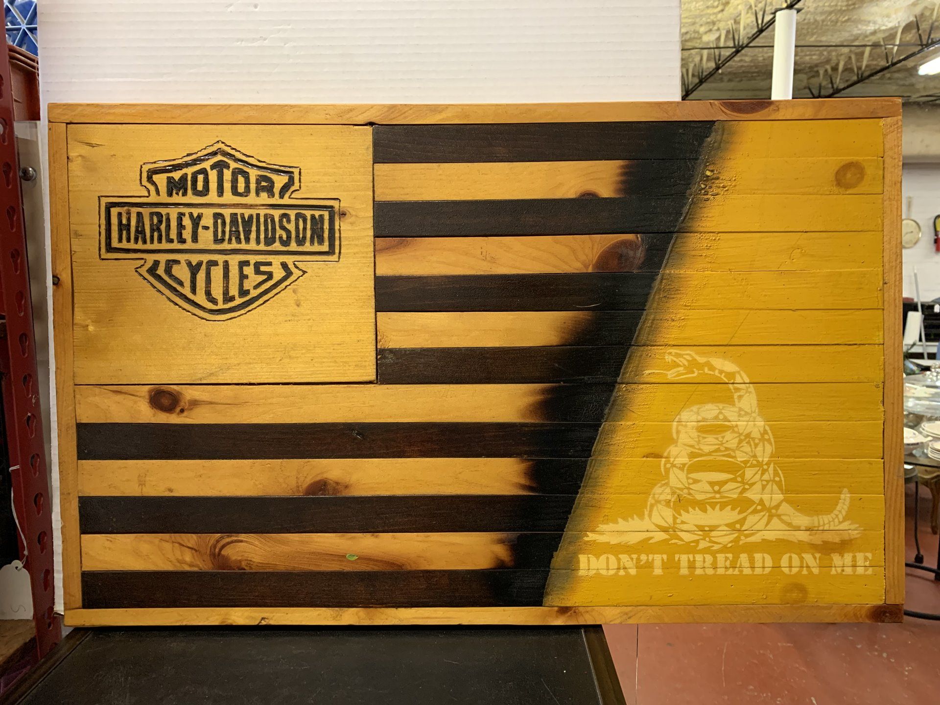 HANDMADE WOODEN HARLEY DAVIDSON WOODEN WALL DECOR 30" LONG X 16" WIDE
