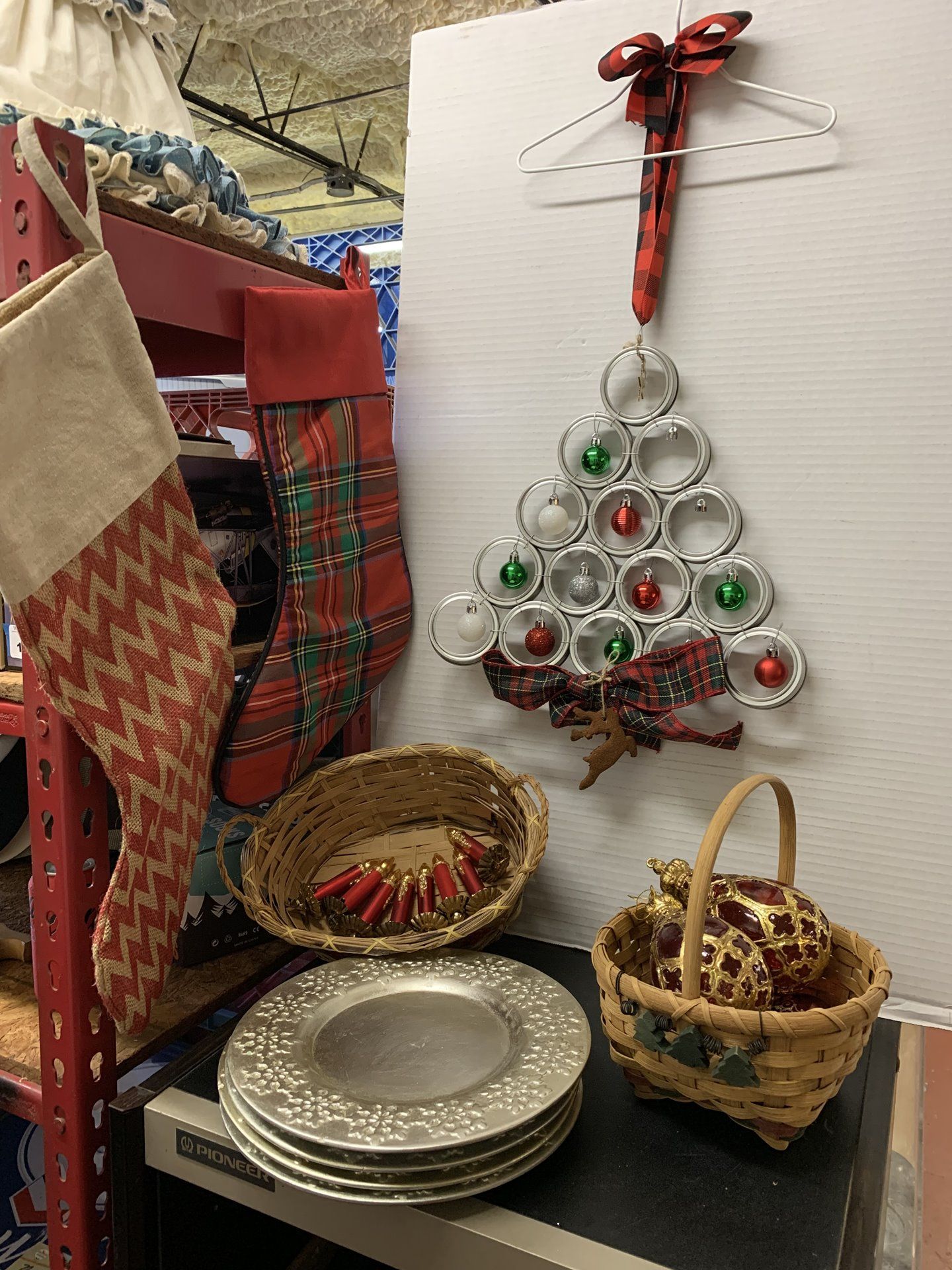 ASSORTED CHRISTMAS ITEMS TO INCLUDE 4 SILVER CHARGERS & MORE