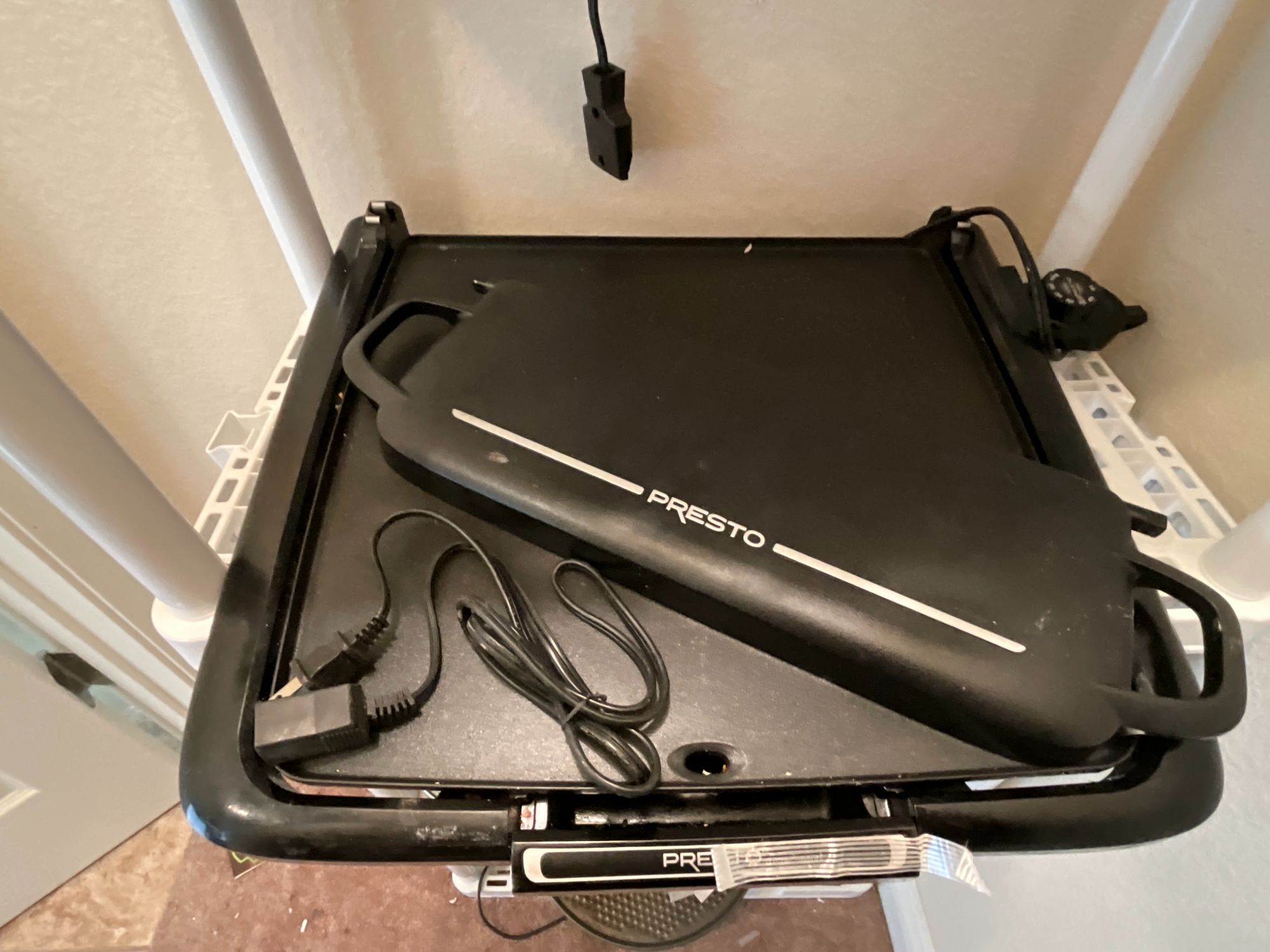 Instant Pot, electric skillet, plastic shelf 23" W x 12" D x 48" T.