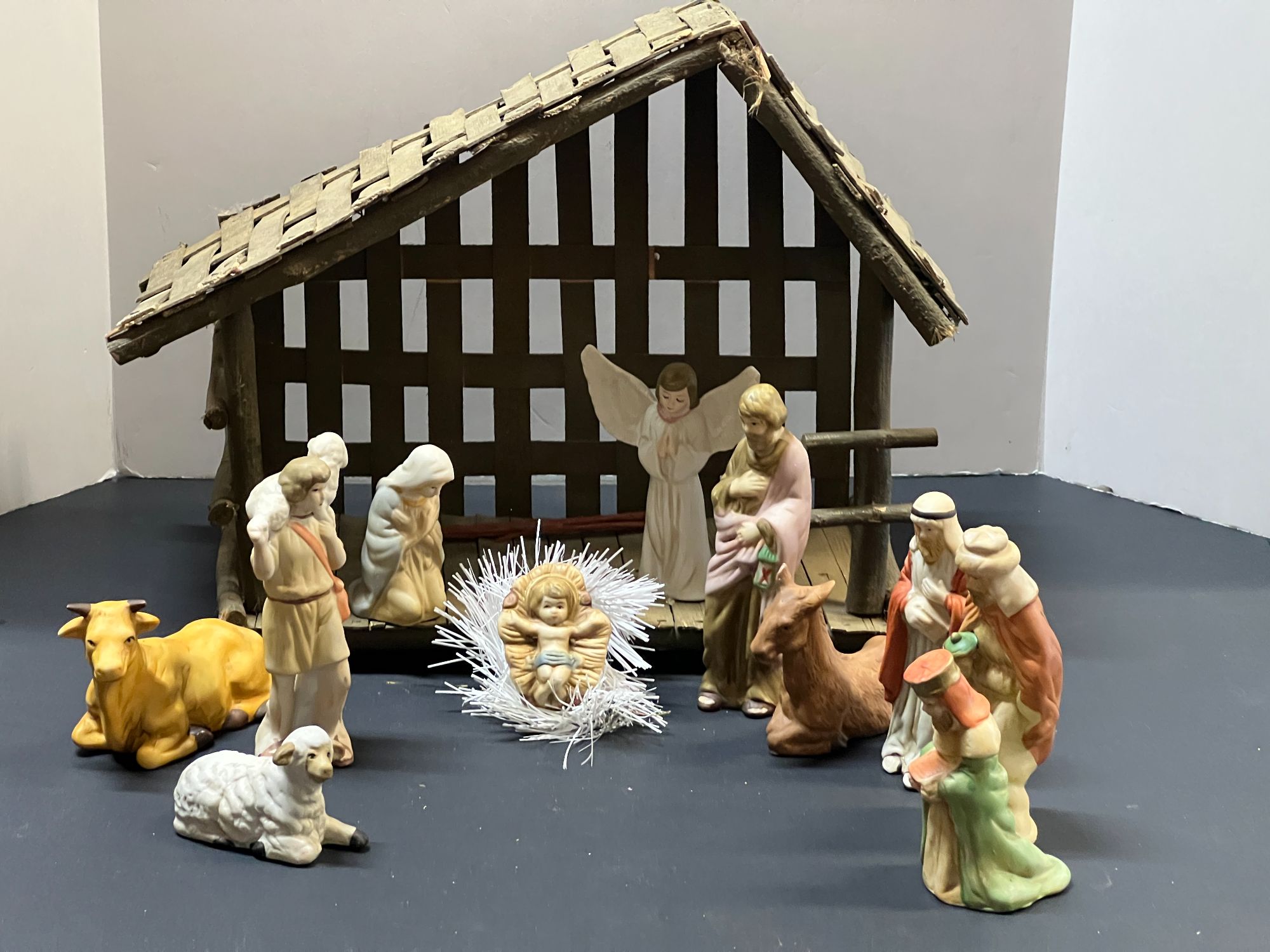 Nativity set with ceramic figurines, see pictures for details.