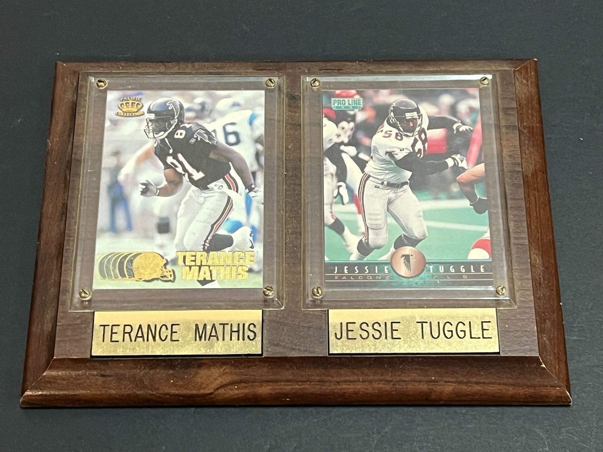 Terance Mathis and Jessie Tuggle framed sports cards, see pictures for details.