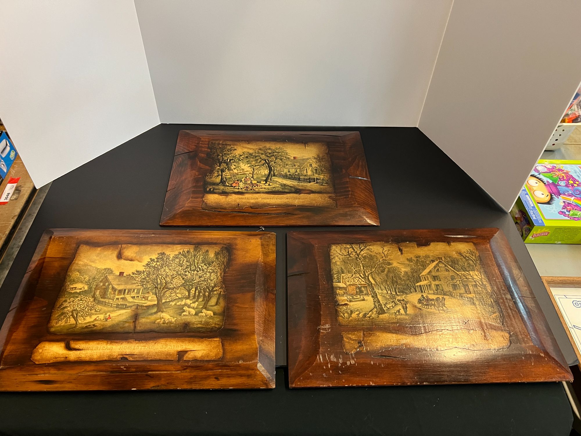 Decoupage artwork on wood, two pieces, see pictures or details.