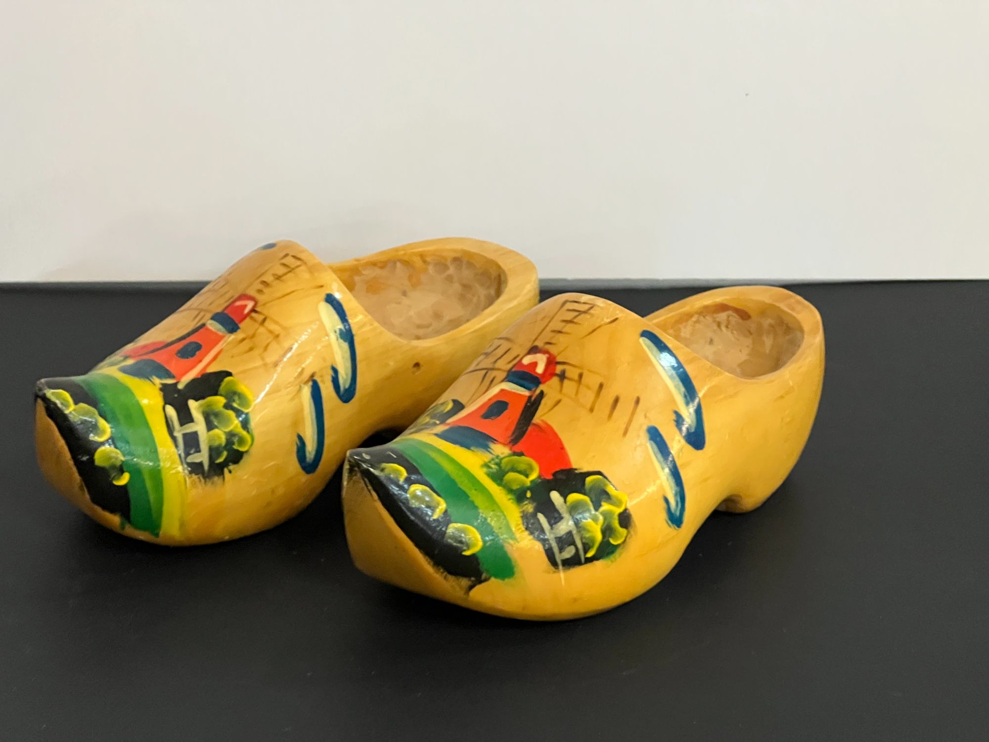 Painted wooden shoes, made in Holland, see pictures for details.