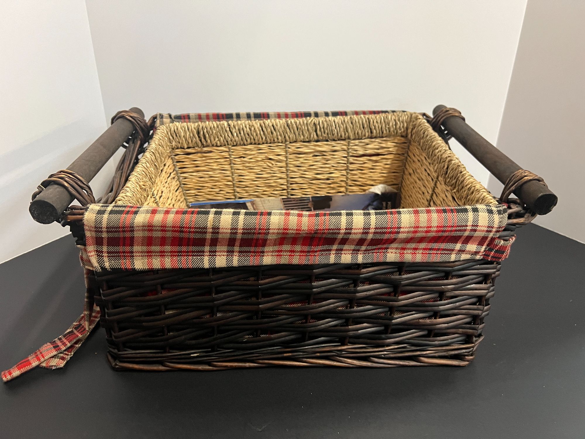 Decorative baskets, two pieces, one is lined, see pictures for details.