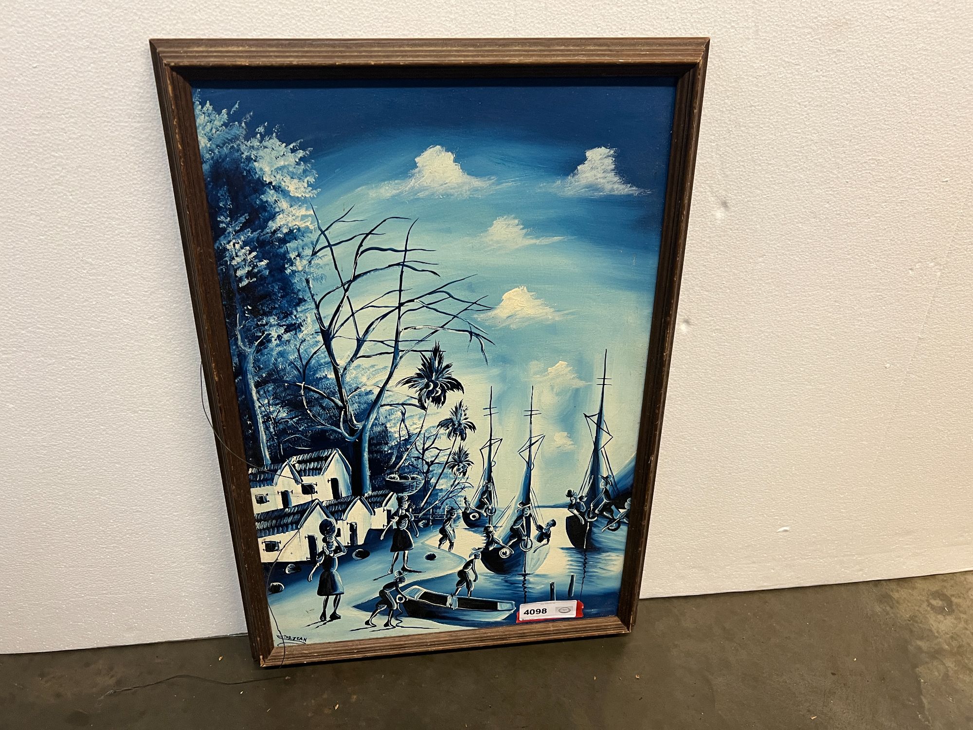 Vintage Haitian oil painting on stretched cloth by Victor Jean, see pictures for details.