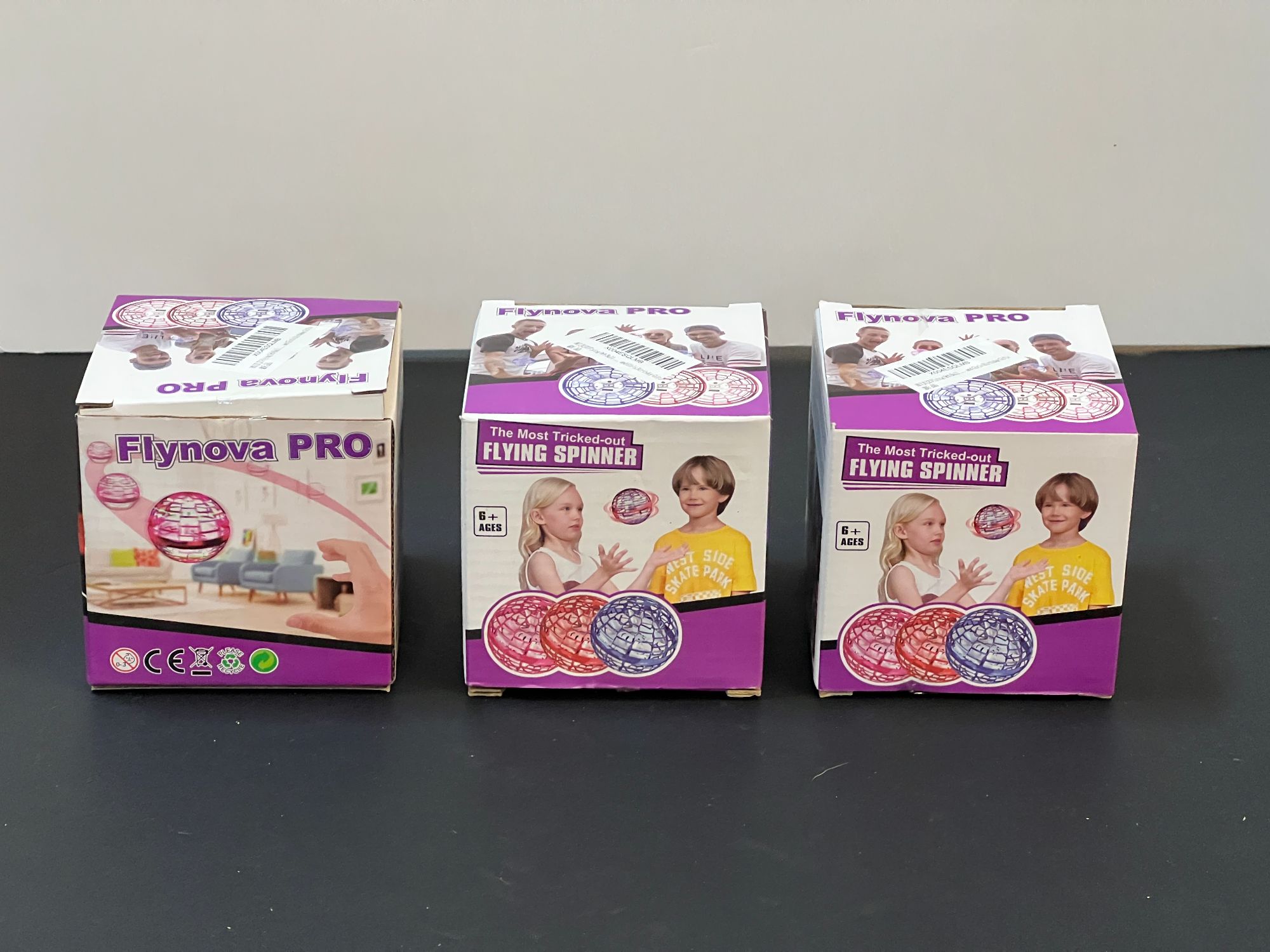 Flynova Pro flying spinner orb ball, set of three, all come in original packaging, see pictures for details.