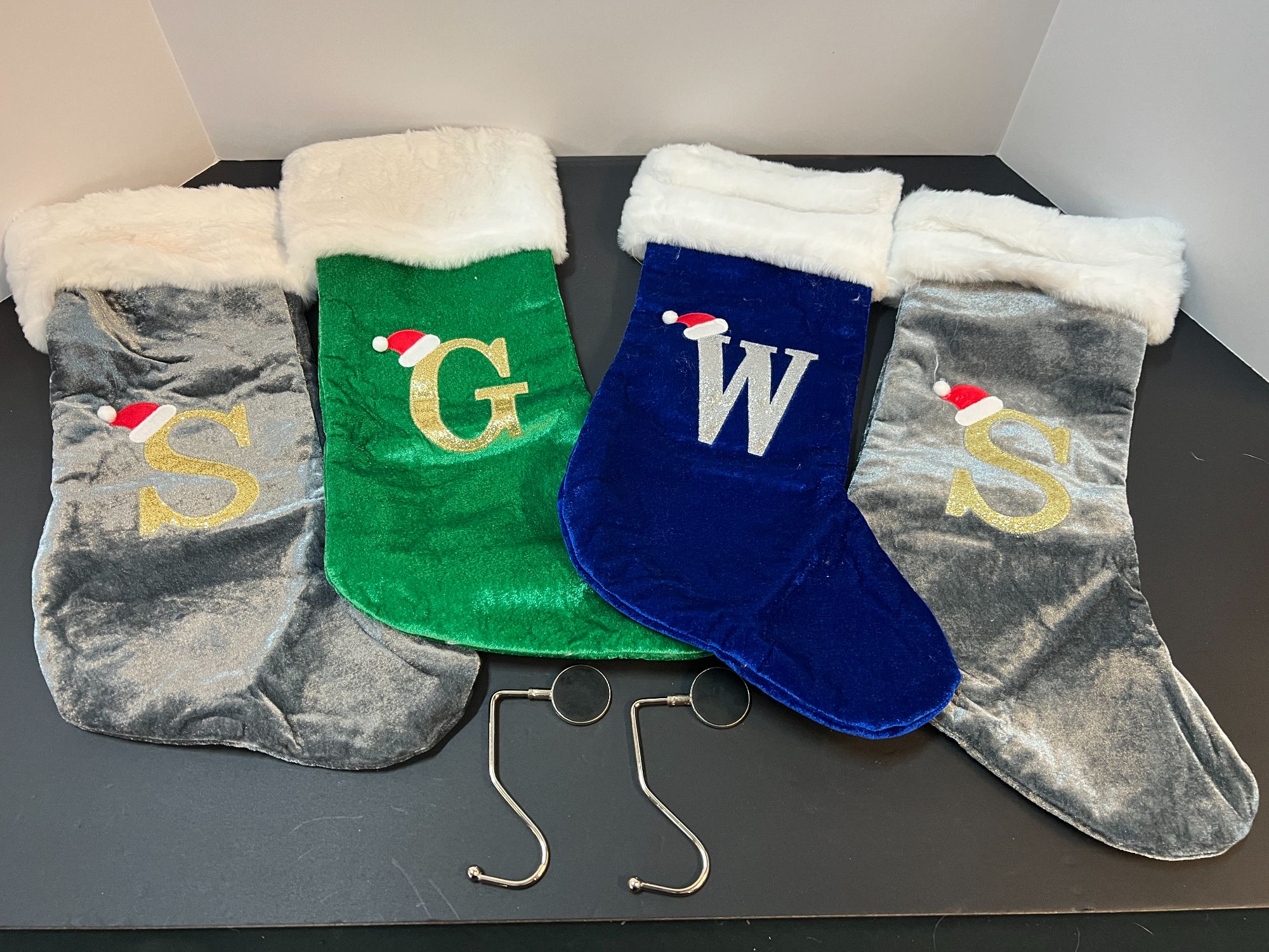 Initialed Christmas stockings, set of four also comes with two hanger hooks, see pictures for details.