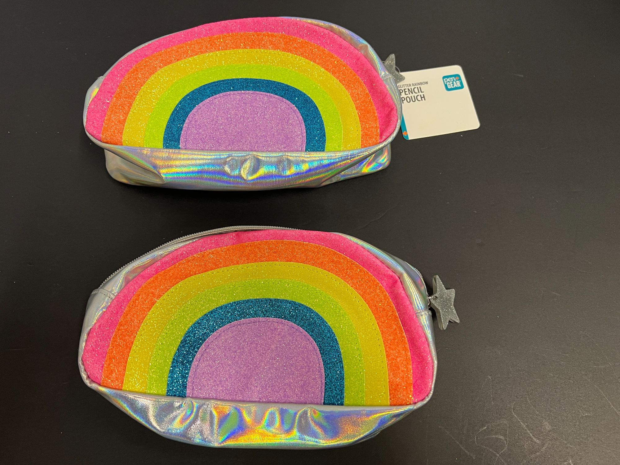 Girls rainbow glitter pencil pouch, set of two, see pictures for details.
