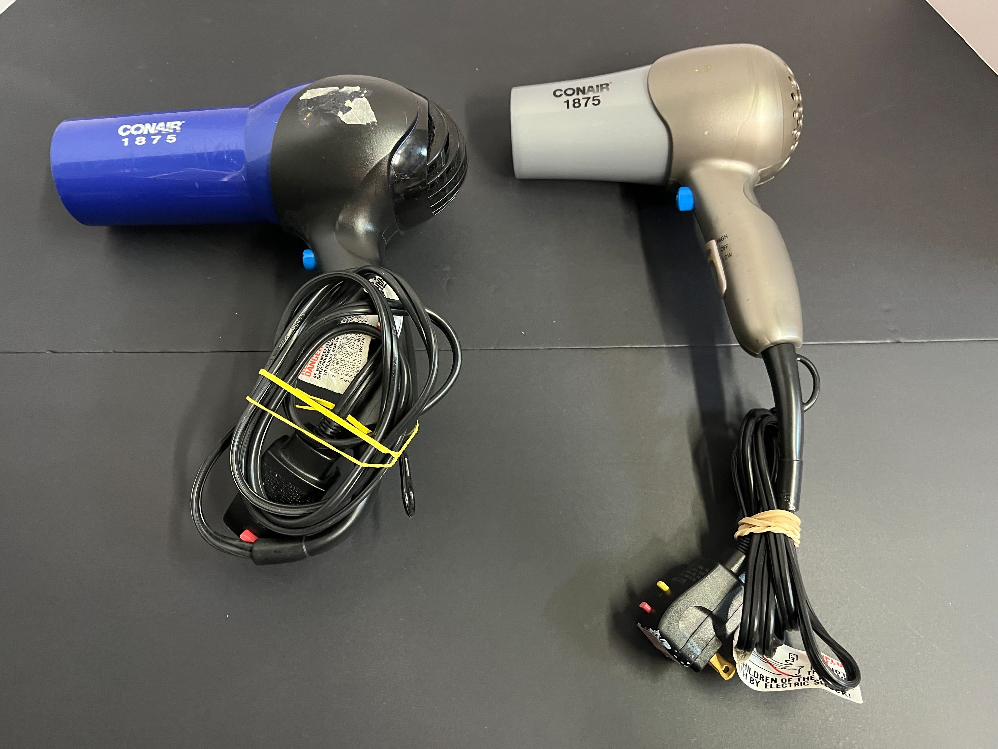 Conair 1875 blow dryers, set of two, working condition unknown, see pictures for details.