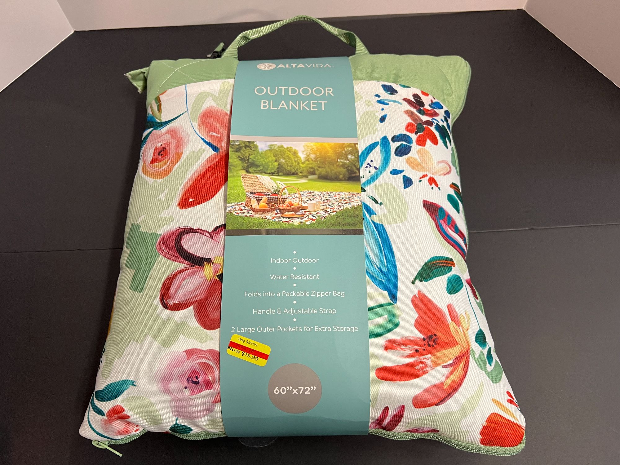 60” X 72” outdoor blanket comes with packable zipper bag, with strap, see pictures or details.